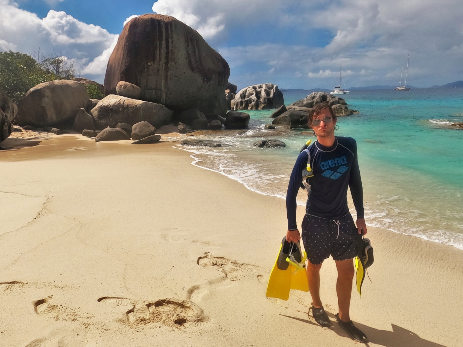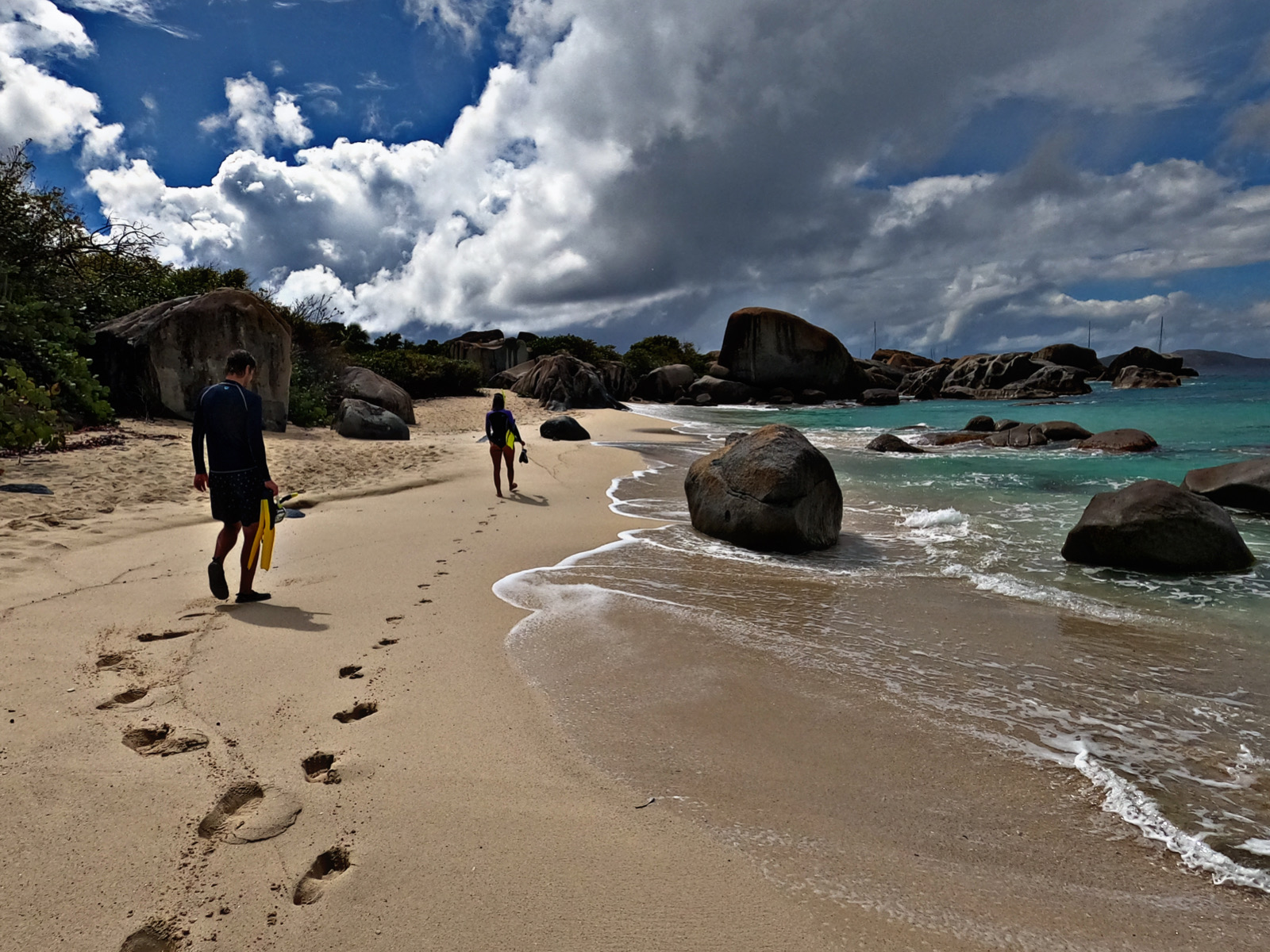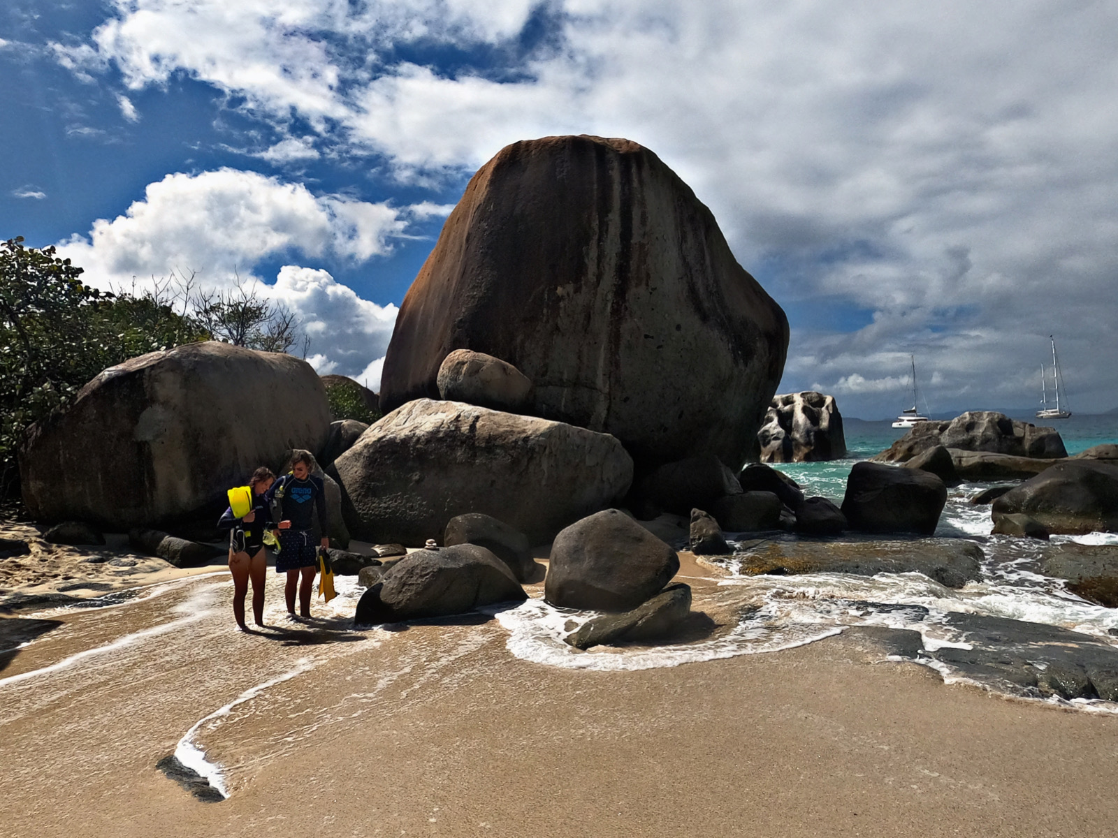 Am Vormittag unseres ersten Tags auf den British Virgin Islands fahren wir nur ein kleines Stück Richtung Süden, um auf der Insel Virgin Gorda die berühmten Baths zu besuchen. Ein Haufen gigantischer, rundgewaschener Steinbrocken auf einem malerisch weißen Sandstrand. Wir schnorcheln an Land, klettern über Felsen und folgen einem versteckten Pfad von Bucht zu Bucht. Eine wirklich wunderschöne Szenerie, mit denen uns unser Sehnsuchtsort willkommen heißt. Nachdem wir mit Jimi einen richtig guten und gut ausgestatteten Fotografen mithaben, will ich mal keine weiteren Worte verlieren: