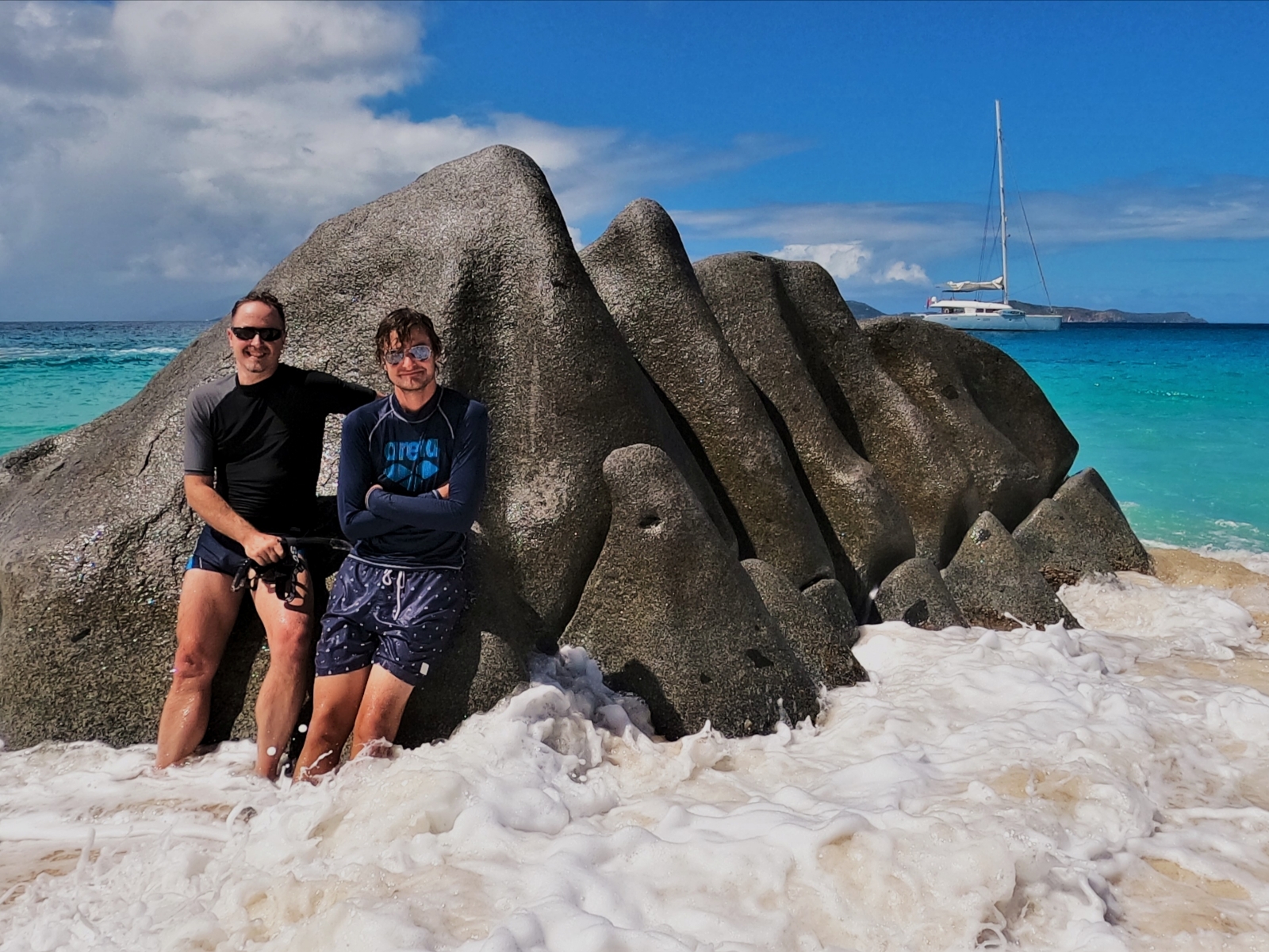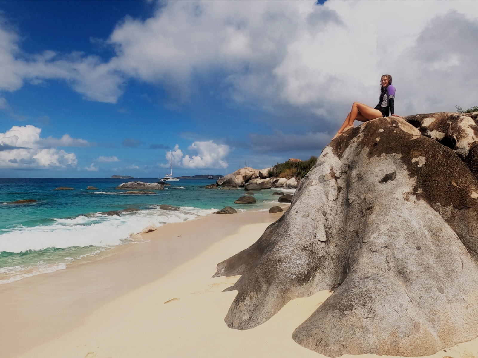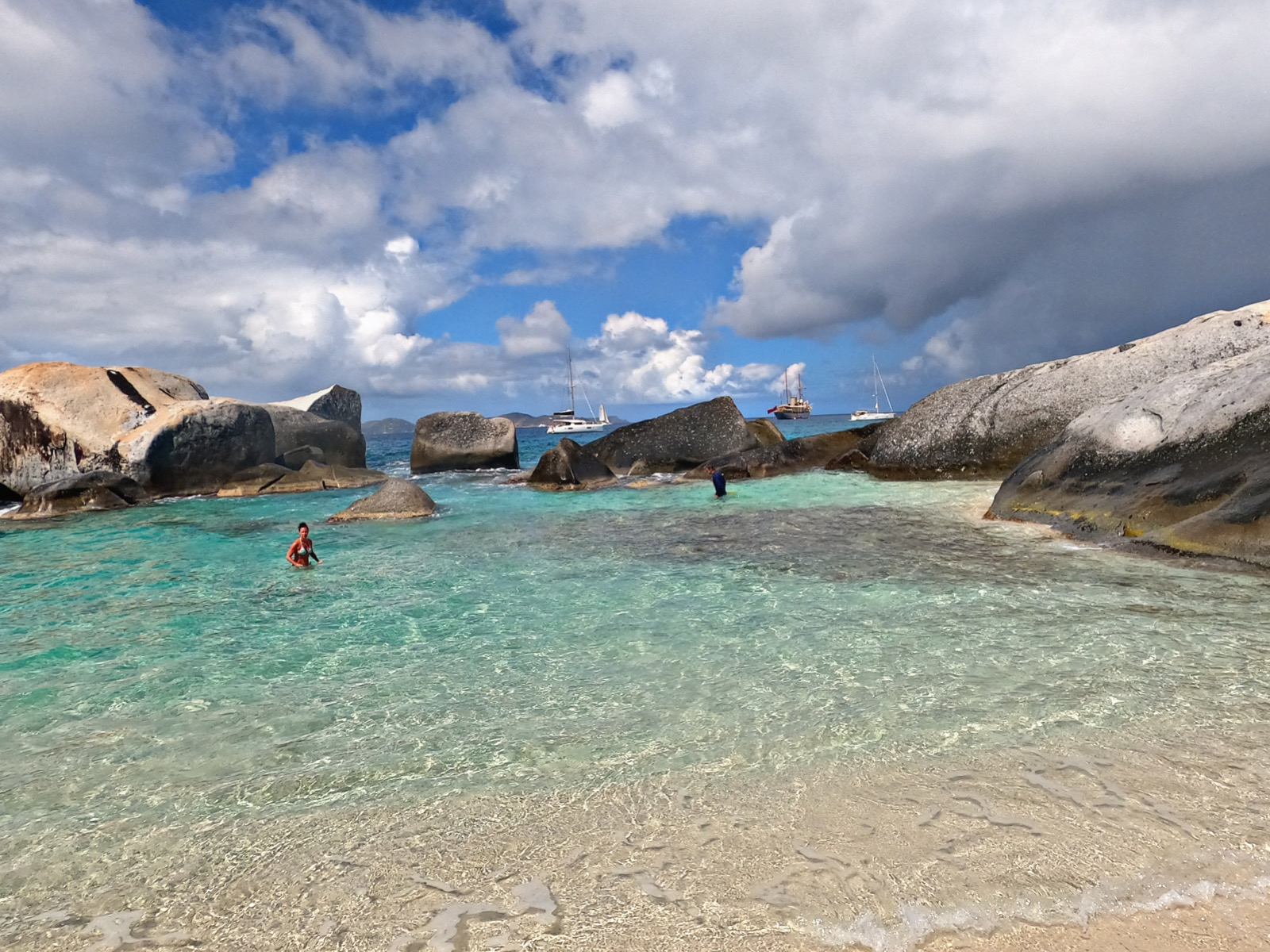 Am Vormittag unseres ersten Tags auf den British Virgin Islands fahren wir nur ein kleines Stück Richtung Süden, um auf der Insel Virgin Gorda die berühmten Baths zu besuchen. Ein Haufen gigantischer, rundgewaschener Steinbrocken auf einem malerisch weißen Sandstrand. Wir schnorcheln an Land, klettern über Felsen und folgen einem versteckten Pfad von Bucht zu Bucht. Eine wirklich wunderschöne Szenerie, mit denen uns unser Sehnsuchtsort willkommen heißt. Nachdem wir mit Jimi einen richtig guten und gut ausgestatteten Fotografen mithaben, will ich mal keine weiteren Worte verlieren: