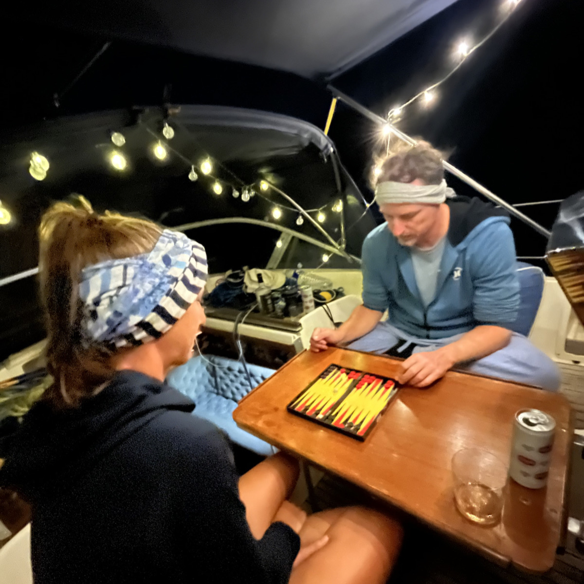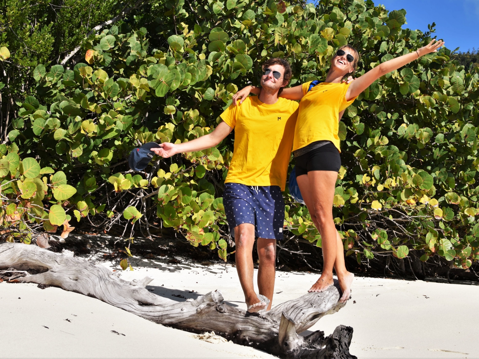 Danach steht es uns wieder frei, hinzufahren wohin auch immer wir wollen und wir entscheiden uns dafür noch eine Nacht in der entspannten Bucht Little Harbour zu bleiben. Beim Schnorcheln rund um das Boot verfolgen wir interessiert einen Stechrochen und entdecken eine Copia a.k.a. Schiffshalter, die sich wohl in Mêlées Kiel verliebt hat. Als Schmankerl des Abends bereiten wir für Jimi ein Quiz vor mit dem Titel: Ist das ein nautischer Begriff!?, in dem erraten werden muss, ob Dinge wie Sesambeschlag, Lippsiegler, Steven oder Bullenstander tatsächlich existieren. Da das für uns Moderatoren augenscheinlich lustiger war als für Jimi, rächt er sich später mit einem Ist das ein Fisch!?-Quiz. Beide Versionen sind übrigens auch in unserem Onlineshop bestellbar! Mit dem Code quiz2023 erhältst du nur heute 10 % Rabatt.