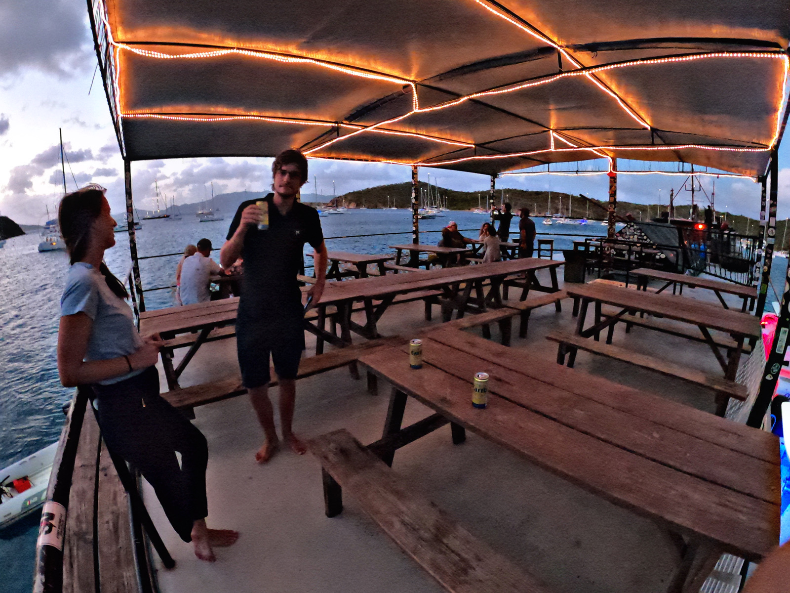Wir verbringen also den restlichen Tag damit, das Internet umzudrehen, um eine andere Schule zu finden, die einen kompletten Anfängerkurs anbietet. Nach einer Koffeinüberdosis aus dem nächstbesten Café wanken wir als zitternde Zombies in die berühmte Foxy Bar, um das Koffein mit Rumpunsch auszugleichen. Mäßig erfolgreich: Cocktails überteuert, das Personal lahm, Wifi schlecht – das Ambiente ist allerdings einmalig und der Ortswechsel war es, jedenfalls für einen Drink, wert. Und wir finden schließlich mit den Blue Water Divers in Nanny Cay auf Tortola eine Tauchschule, die mich ausbilden will und unterdessen Jimi und Bernhard mit ein paar Tauchgängen bespaßen kann. In zwei Tagen gehts los!
