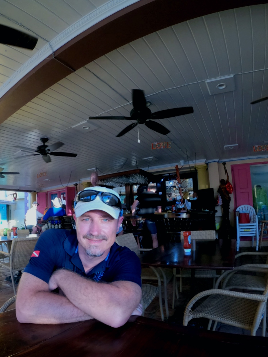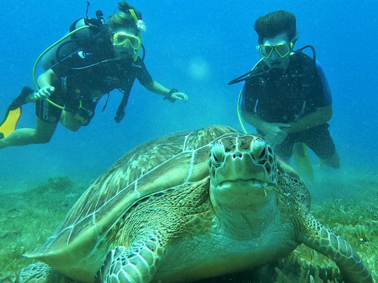Bei Tauchgang Nummer 2 auf Pelican Island sind wir alle gemeinsam unterwegs und haben Spaß mit einer ausgesprochen zutraulichen Schildköte namens Spikey oder Speedy oder so ähnlich. Vielleicht war der Name auch ein bisschen weniger unpassend. Außer dass es, besonders nach dem Auftauchen, richtig kalt ist, ist es ein wunderbarer Vormittag. Ich fühl mich noch nicht gerade routiniert, hab aber schon viel neues gelernt.