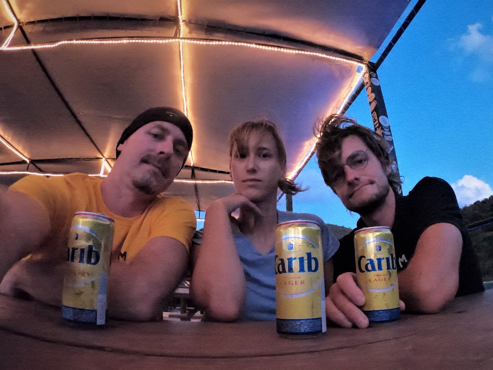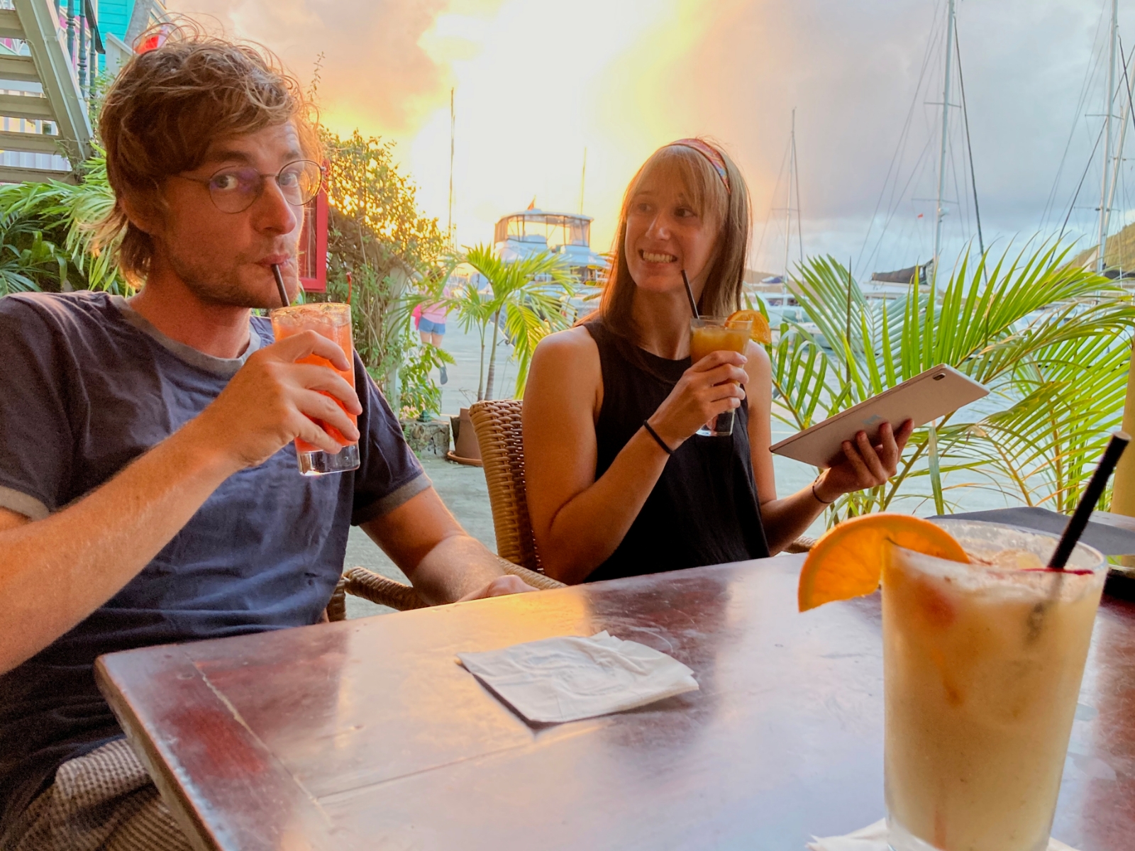 Um die Wartezeit zu überbrücken zeigt uns Jimi die Welt des Ti-Punch: Man schneide ein Stück Limette in kleine Stückchen, gebe diese gemeinsam mit einem Teelöffel Rohrzucker in ein Glas und gieße es mit braunem Rum (vorzugsweise Mount Gay) auf. So verbringen wir von nun an die eine oder andere tatenlose Stunde.