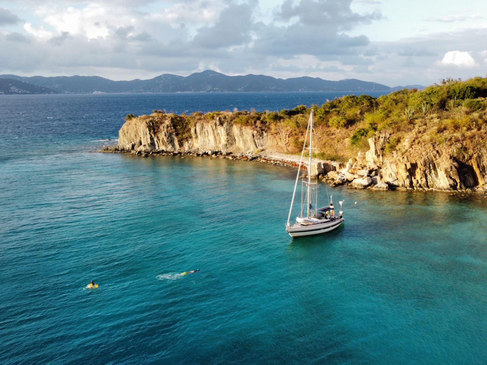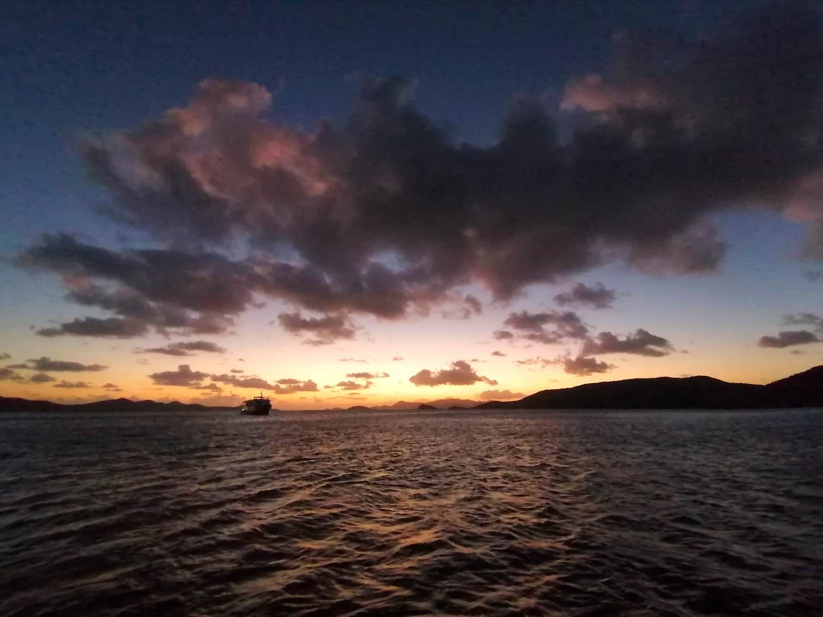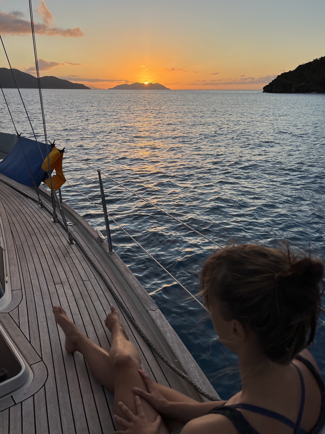 Praktischerweise ist der Zutritt zu allen Stränden, selbst auf den vielen privaten Inseln, öffentliches Recht auf den BVIs. Der Tag endet, wie so viele, mit Ti-Punch, Gitarre und Sonnenuntergang am Vorschiff.