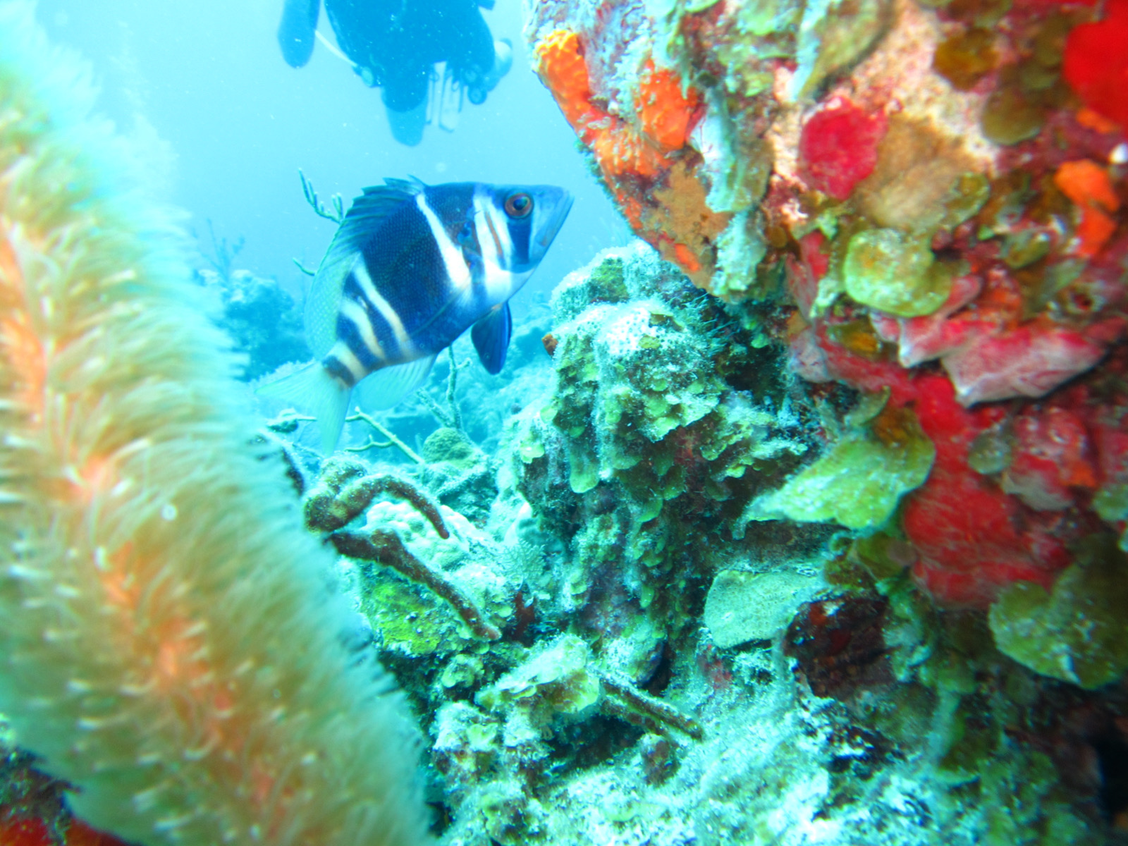 Vor unserem nächsten Tauchgang machen wir noch einen Stopp auf Cooper Island, wo wir leider das langfahrerfeindliche Bojensystem der BVIs unterstützen: 40 $ für eine Boje ohne sonstige Leistungen. Den Fehler machen wir nicht nochmal, aber sei es wie es ist, das angrenzende Resort bietet ein nettes Ambiente mit inselgebrautem IPA und der nahegelegene Steinhaufen ein spektakuläres Schnorchelerlebnis: Wir sehen zum ersten Mal einen Hai – ein hübscher Ammenhai, der sich schnell verzupft sowie er uns sieht. Außerdem zu unserer einen Seite ein kleines Riff mit süßen Fischchen und auf der anderen Seite tiefere Gewässer mit einem riesigen Schwarm riesiger Tarpons, deren Bewegungsmuster an Dementoren erinnern.
