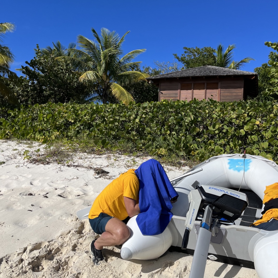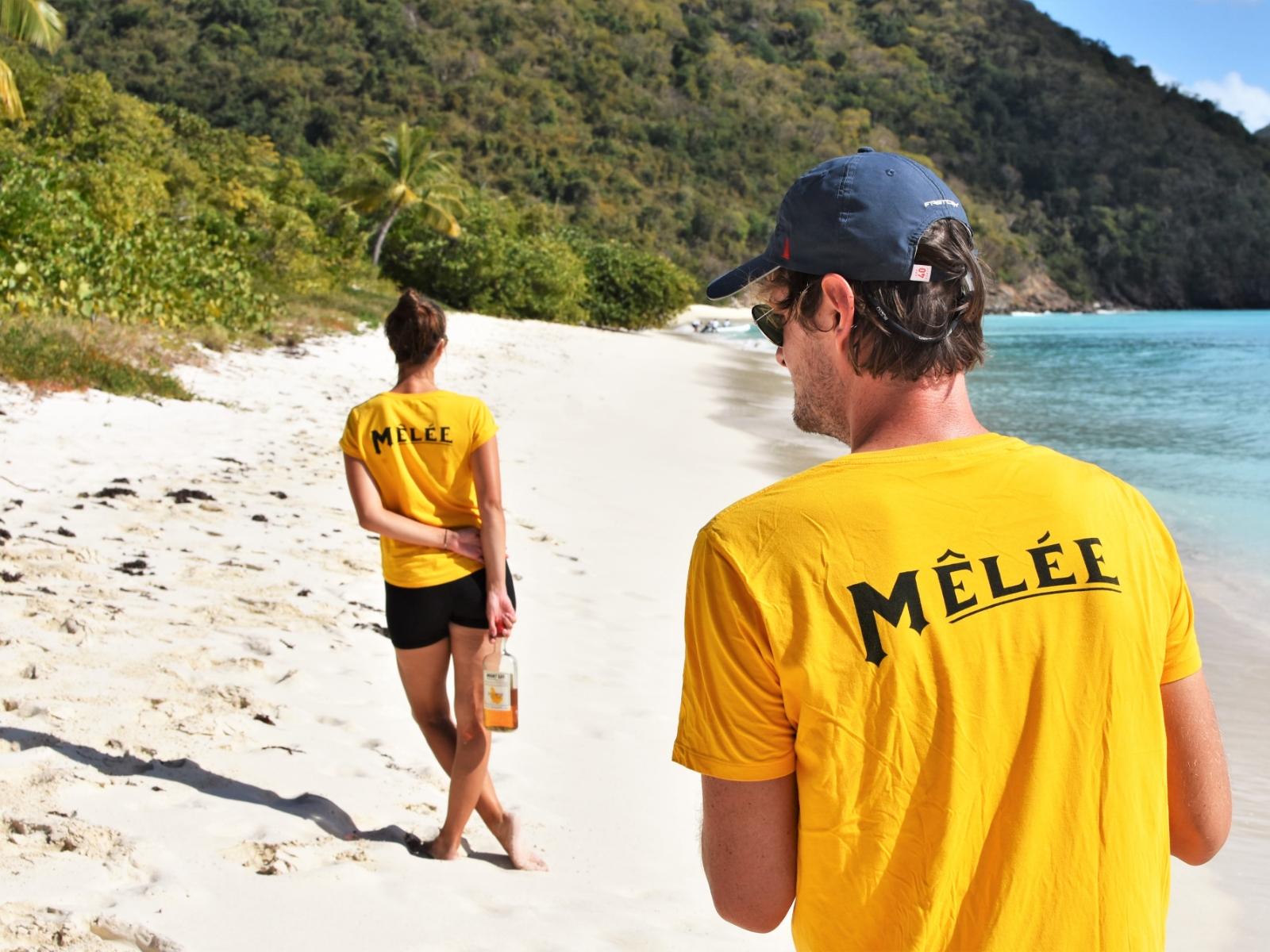 Die für den vorletzten Abend auserkorene Lee Bay stellt sich als völlig ungeschützt heraus, sodass wir schließlich in der White Bay auf Guana Island wie am Vortag neben einem kostenpflichtigen Bojenfeld ankern. Ein Hail-Mary-Ankerwurf auf 13 Meter Tiefe gelingt beim ersten Versuch. So können wir den weißen Strand der Bucht, die wir uns mit drei Megayachten und einem Hubschrauber teilen, für einen Spaziergang mit exzessiver Fotosession nutzen (nicht gesponsert von Mount Gay). Stilechte Karibikromantik.