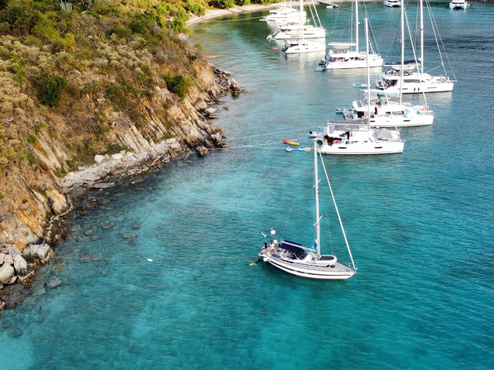 Nachdem die Tauchcrew uns wieder auf unser eigenes Boot übergeworfen hat, geht es auch gleich weiter nach Little Harbour auf Peter Island, wo wir nach Monaten wieder einmal unser, nicht gerade geliebtes, Ankern mit Landleine vollführen müssen. Jimi meldet sich freiwillig als Anlandschwimmer und das Manöver funktioniert perfekt. Mit Buganker und zwei Landleinen endet der Tag aufgrund der heutigen Tauchgänge recht früh.