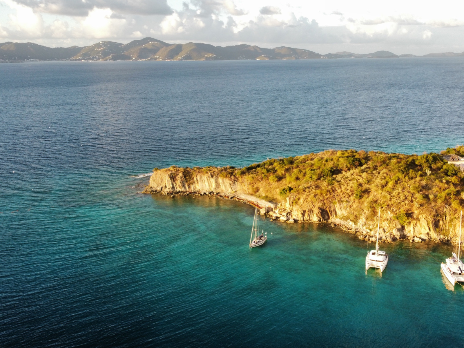 Der nächste Tag ist ein regnerischer. Diesmal regnet es ungewöhnlicherweise stundenlang fast durchgehend, während wir in der Hauptstadt Road Town proviantisieren und lunchen. Langsam aber sicher nähert sich unsere Zeit mit Jimi dem Ende, und so segeln wir in kleinen Etappen Richtung Flughafen. Auf dem Weg dorthin ankern wir vor Buck Island, dem offenbar einzigen Platz in der Karibik, an dem nur Monohulls ankern. Heute beginnt für uns eine, seit dem Mittelmeer nicht erlebte, regenfreien Leichtwindphase, die zumindest 6 Tage anhalten sollte.