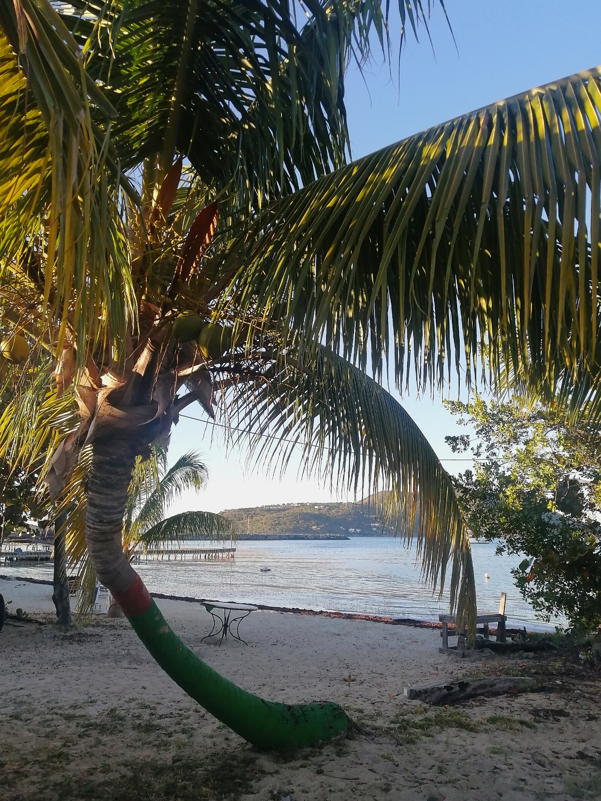 Nachdem in der Nähe der Tauchbasis in Nanny Cay leider nicht geankert werden kann, verbringen wir früher als erwartet wieder zwei Tage in der Marina. Diese ist jedoch mit warmen Duschen, Pool, Café, Restaurant und letztendlich der Tauchschule so gut ausgestattet, dass sie ihr Geld tatsächlich wert ist. Beim Anlegen werden werde ich mit positivem Sexismus (A lady on the wheel!? I can‘t believe it!!) und nützlicher Hilfestellung vom Steg begrüßt. Wir stellen uns im Tauchshop vor und zur Abendgestaltung kocht Jimi uns einen unvergesslichen kreolischen Eintopf mit smoked herring und selbstgemachten Dumplings. Kaum zu glauben, dass ich das in Zusammenhang mit geräuchertem Fisch sage – es war köstlich!