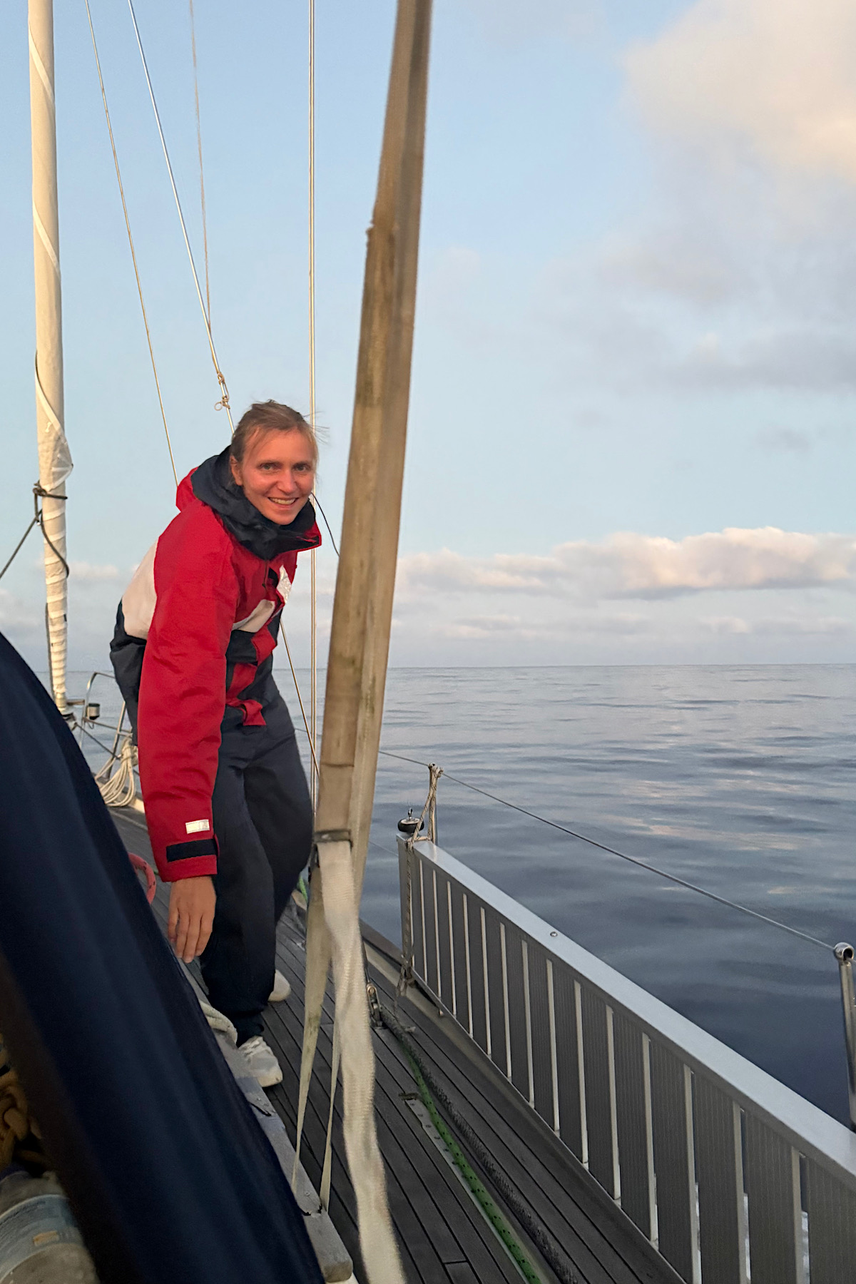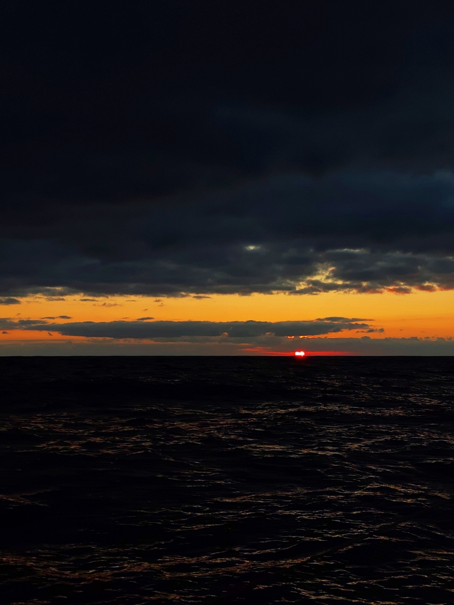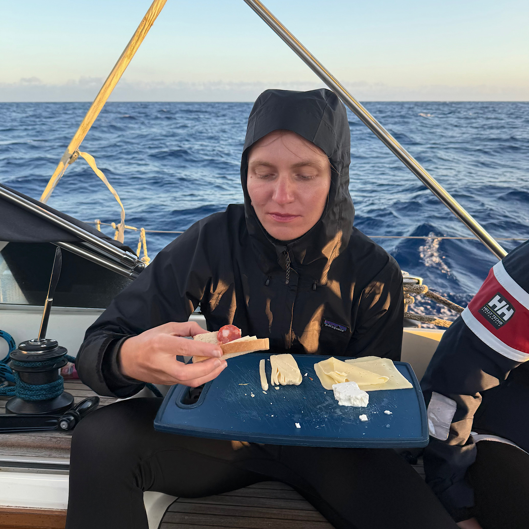 Während meiner ersten Nachtschicht überlege ich fast durchgehend, wann wohl die erste Welle über Deck bricht – und ob so ein Segelboot wohl wirklich nicht so leicht kentern kann. Spoiler: Ich bin trocken geblieben und wir sind nicht gekentert. Und irgendwann – nach den zähen ersten 48 Stunden stellt sich tatsächlich auch irgendwann Freude ein: stabiler Halbwindkurs, Tunfischpasta, zauberhafter Sonnenuntergang und glitzerndes Plankton bei Nacht.