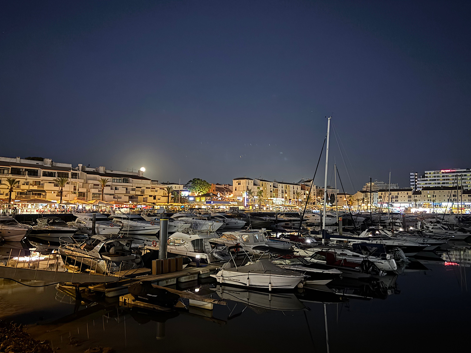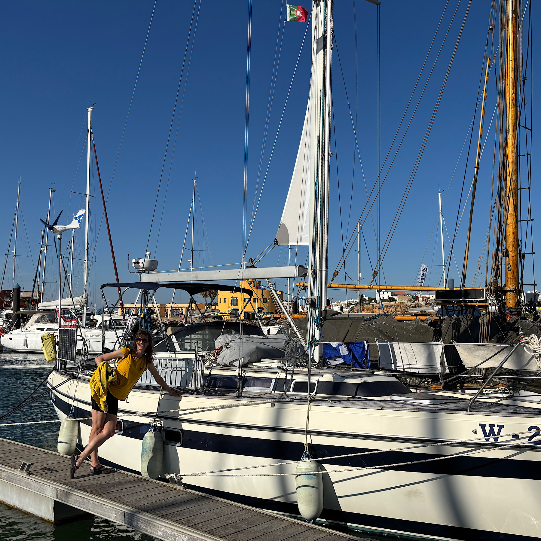 Angekommen in der Marina von Portimão legt Bernhard dann noch bei Böen von 25 Knoten ein beeindruckendes Anlegemanöver an den Tag. Nach 8 Tagen und 4 Stunden auf See sind wir wohlbehalten angekommen. Mit wackeligem Boden unter den Füßen genießen wir eine Dusche, die länger als 30 Sekunden dauert. Abschließend zelebrieren wir die Ankunft mit Pizza, Aperol, Salat (frisches Gemüse!) und einem gigantischen Eisbecher. Und der Schlaf in dieser Nacht, ohne Schaukeln, Motorgeräusche und Wecker um 00:30 – unbeschreiblich.