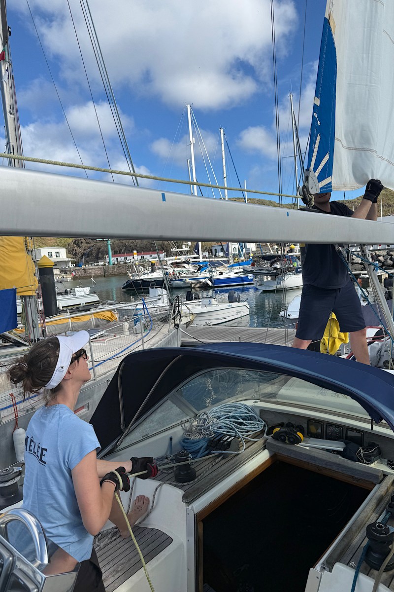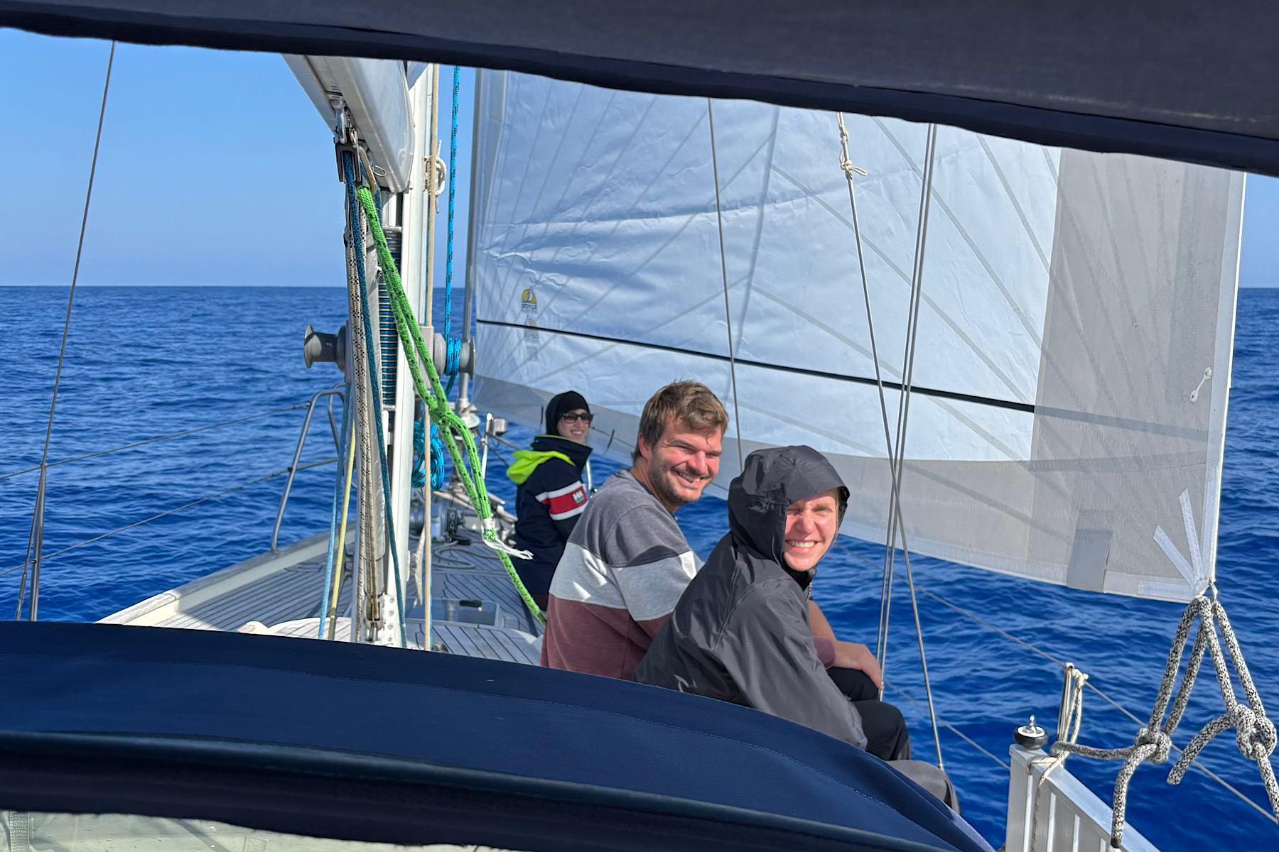 Fast forward, März 2025, bekomme ich (Antonia) ein WhatsApp-Nachricht von Pia: Was machen denn eigentlich eure Segelpläne? Wenig später sitzen wir wieder zu viert bei einem Bier. Pia und Bernhard erzählten von ihrem Plan, ihr Boot Mêlée nach dem Abenteuer Übersee im Sommer 2025 von den Azoren zurück nach Festlandeuropa zu segeln. Wir sind mindestens so überrascht von der Anfrage, sie zu begleiten, wie sie von unserer sofortigen Begeisterung, unseren Sommerurlaub mit einer Langfahrt verbringen zu wollen – was jetzt nicht im klassischen Sinne in die Kategorie erholsamer Urlaub fällt. Robert und ich sind uns am Nachhauseweg sofort einig: Das ist eine einmalige Chance – die schlagen wir auf gar keinen Fall aus!
