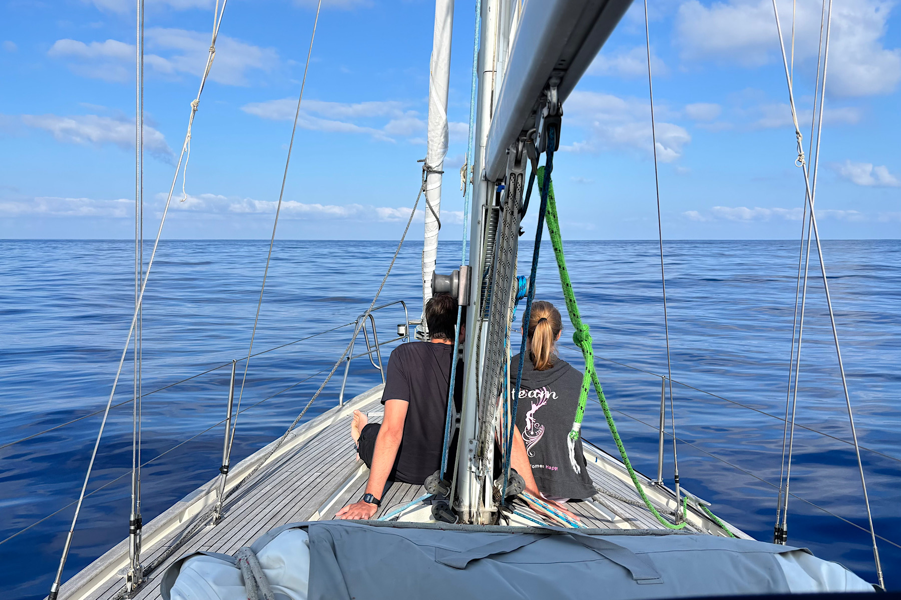 Auch wenn uns die Flaute am halben Weg kurz ins Grübeln bringt (Haben wir genug Diesel? Machen wir einen Abstecher nach Madeira?) bevorzugen wir diese Situation gegenüber Sturm und Welle. Das war bisher unsere gemütlichste Überfahrt – danke Antonia & Robert, dass ihr diese Etappe mit uns gemeistert habt!