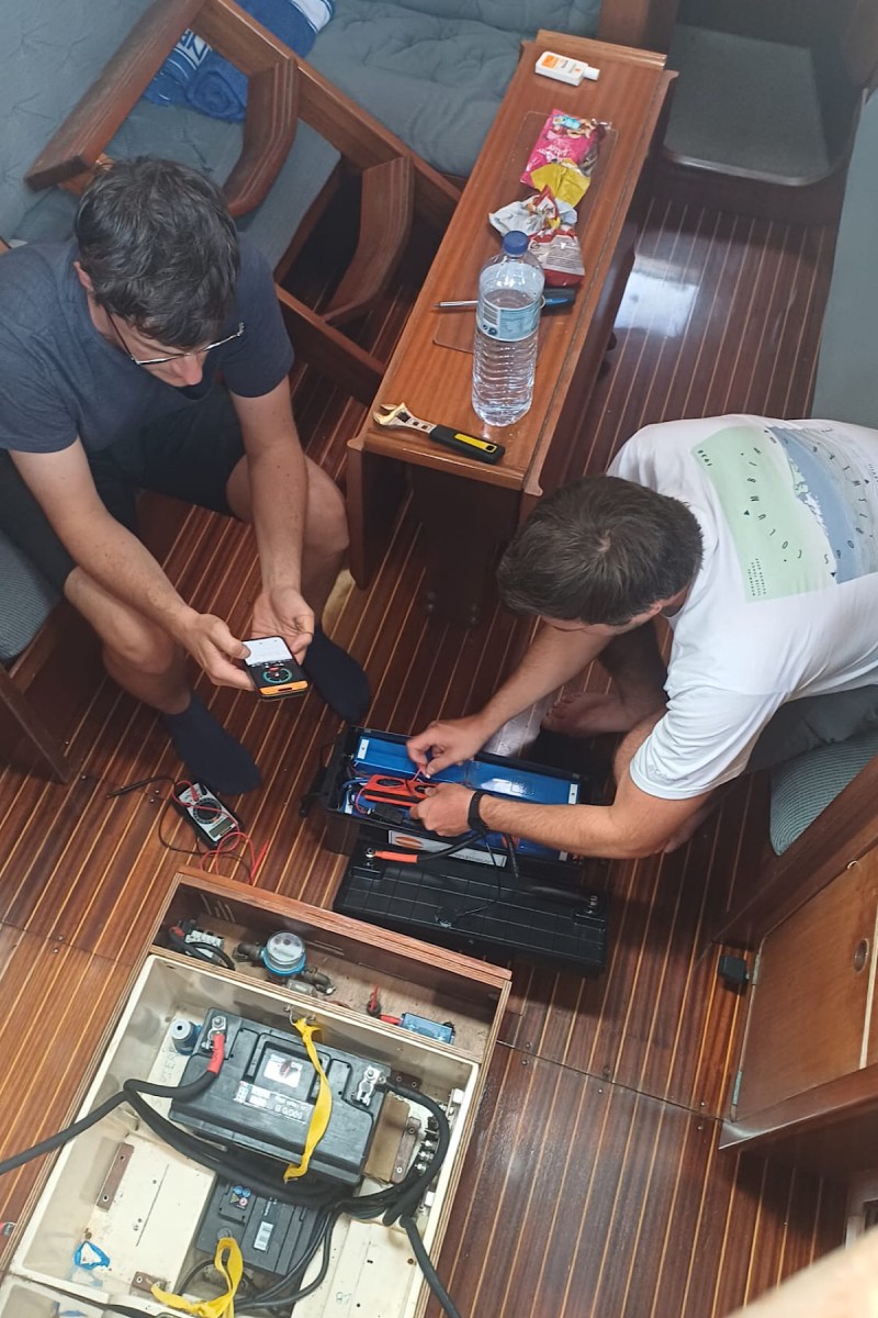 Mit nur einem Jahr Verspätung setzen wir endlich unsere brandneuen Segel, inspizieren & schmieren unsere selbst geflickte Ruderanlage nochmal gründlich und machen das Schiff bereit für die hohe See. Da wir mit Robert glücklicherweise einen ambitionierten Bastler an Bord gelockt haben, gelingt es uns sogar den Endgegner in Form der widerspenstigen Lithiumbatterie zu zähmen, indem wir sie davon überzeugen, dass das Konzept Temperatur nicht existiert.