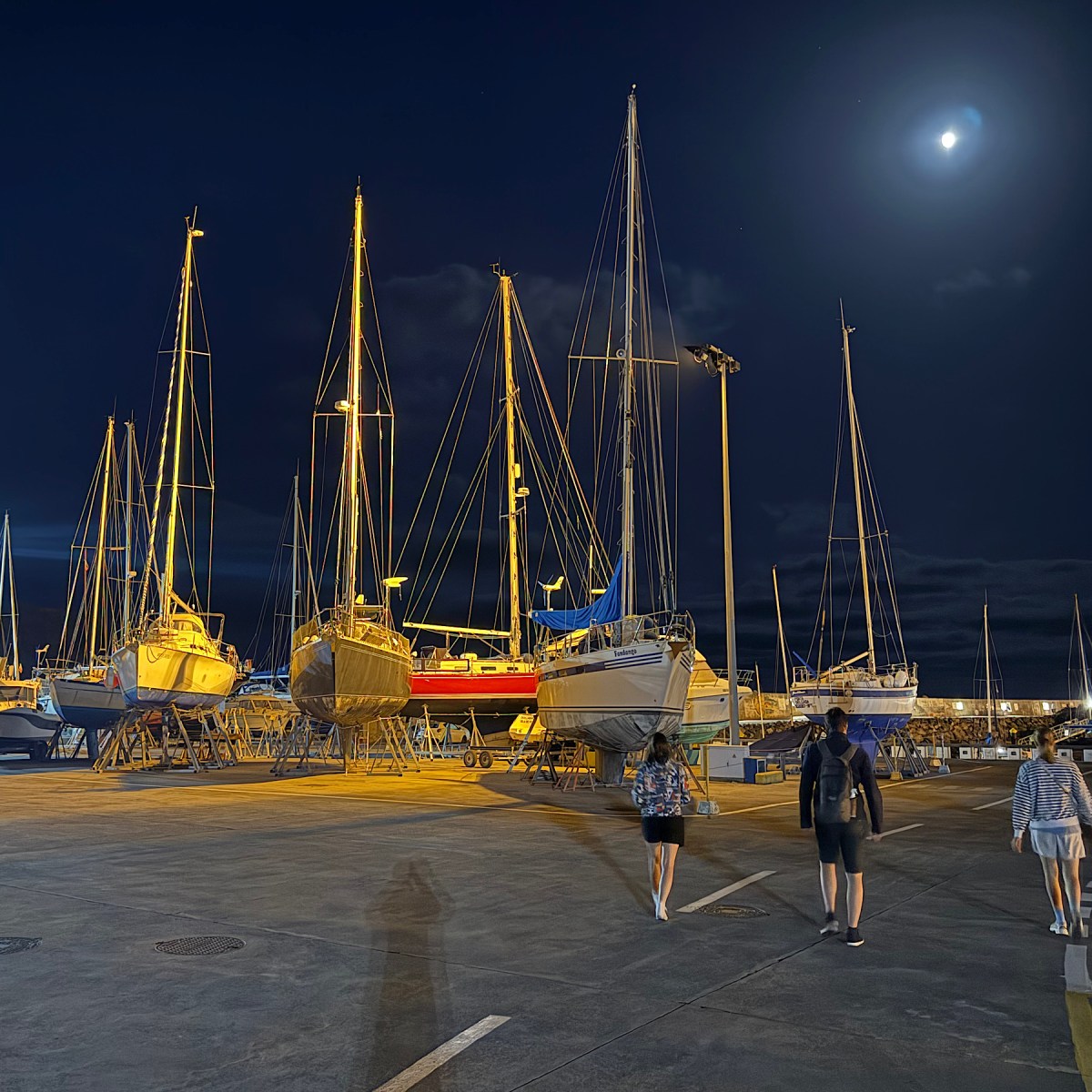 Ein interessantes und für uns neues Phänomen tritt vorübergehend mitten auf dem Atlantik auf: 350 sm vor dem Ziel, also kurz nach Halbzeit, poppen plötzlich über 50 Schiffe auf dem AIS auf, die bis zu 400 sm entfernt sind. Zusätzlich können wir via VHF die abendliche Kommunikation (Gesänge, Pfeifen, Gröhlen, gegenseitiges Triezen etc.) der Fischerboote mitanhören, die vor den Küsten Portugals und Marokkos herumwuseln. Unser AIS und Funk kann technisch aber nur Signale bis 20 sm Entfernung aufnehmen. Wer eine Idee hat, wie das möglich ist, kann gerne mit uns darüber diskutieren. (Anm.: Wir wissen die Lösung bereits.)