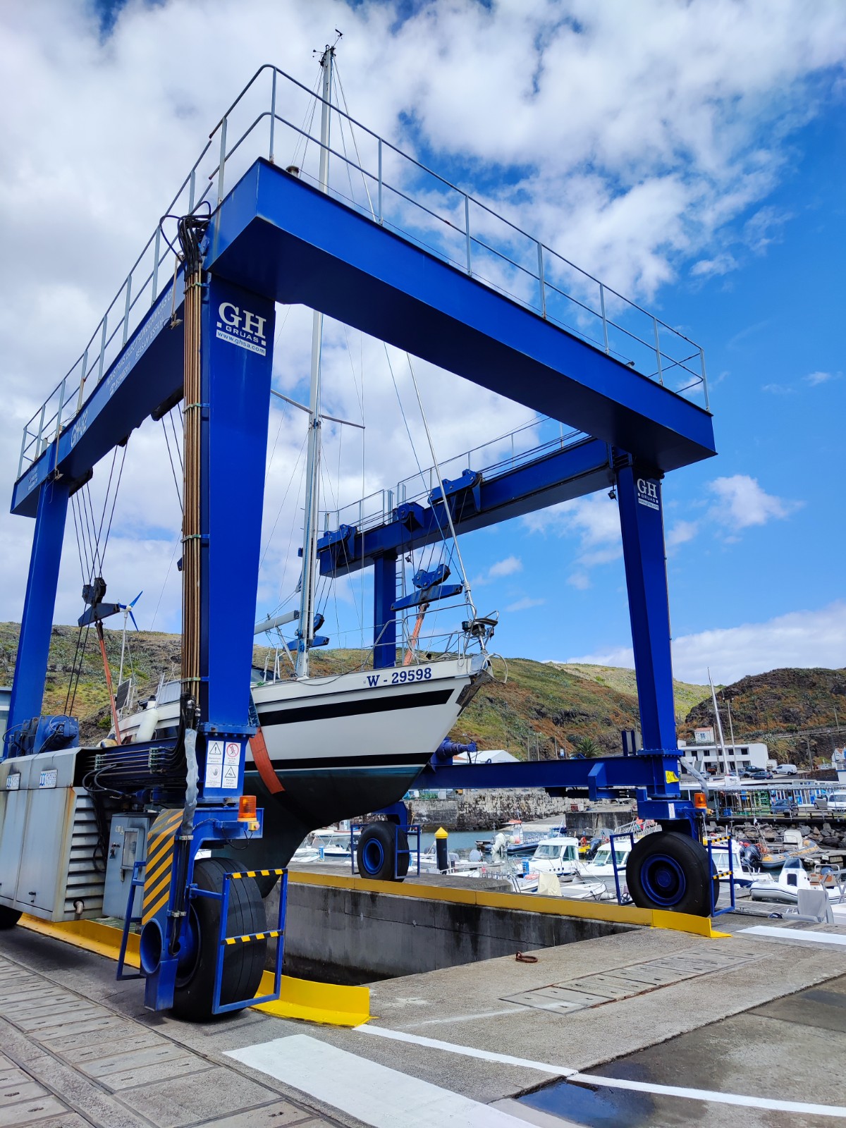 Diesmal fühlt es sich aber anders an, da wir die Azoren wirklich ins Herz geschlossen haben. Wehmütig verbringen wir zum (vorerst?) letzten Mal eine Nacht in Ponta Delgada, bevor wir zum (vorerst?) letzten Mal auf Santa Maria landen. Wir finden Mêlée in der Marina wie erhofft am Trockendock in pole position vor und werden gleich am nächsten Tag ins Wasser gekrant.