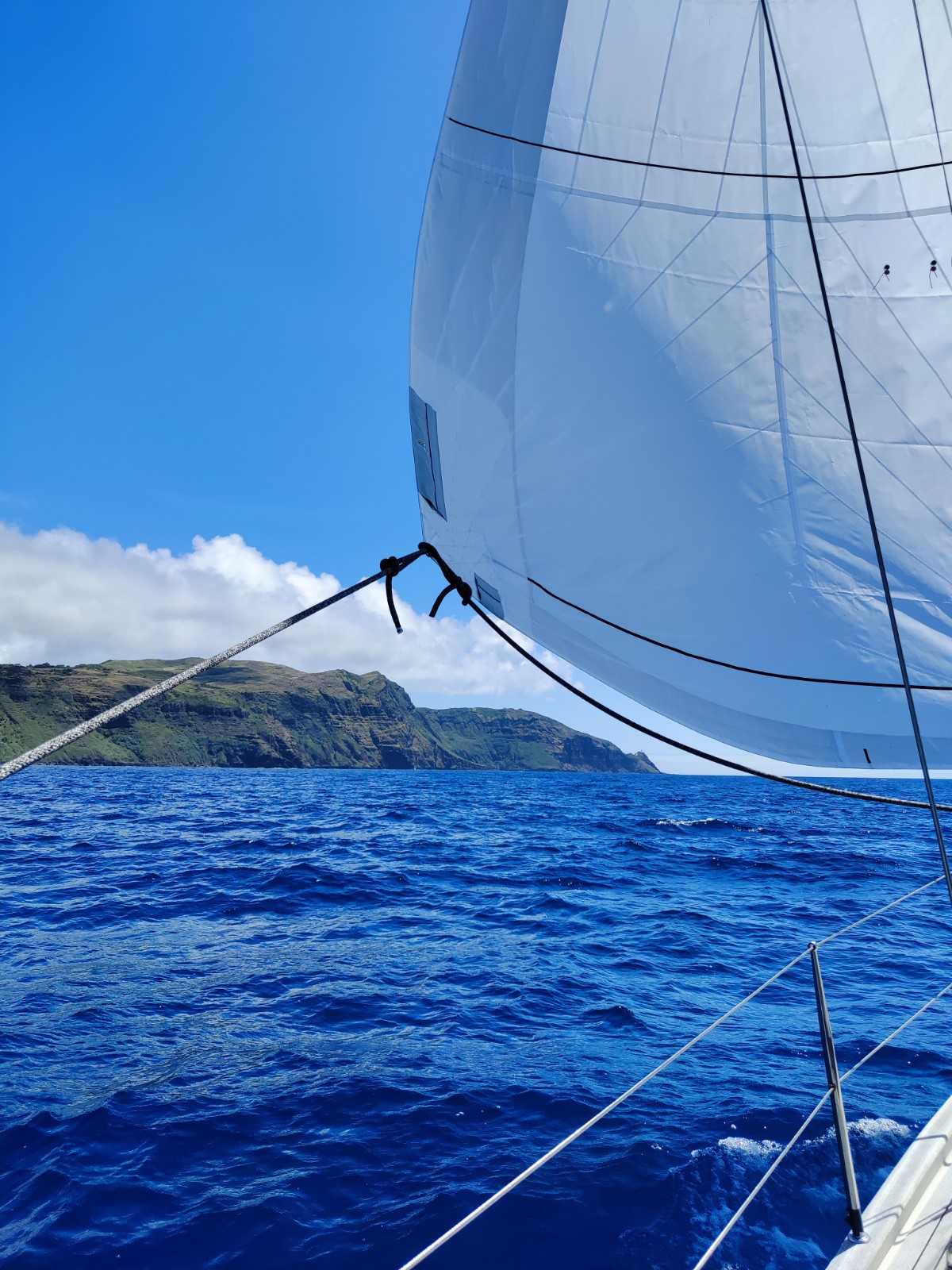 Nach einer Woche auf Santa Maria können wir sagen, dass wir alle Supermärkte (4 Stück) von Vila do Porto erfolglos nach Tomatenmark abgeklappert haben und das Sortiment des einzigen Baumarkts der Insel auswendig kennen. Es hält uns also nichts mehr hier, somit machen wir uns bei strahlendem Sonnenschein und mit nagelneuen Segeln auf den Weg nach Festland-Portugal.