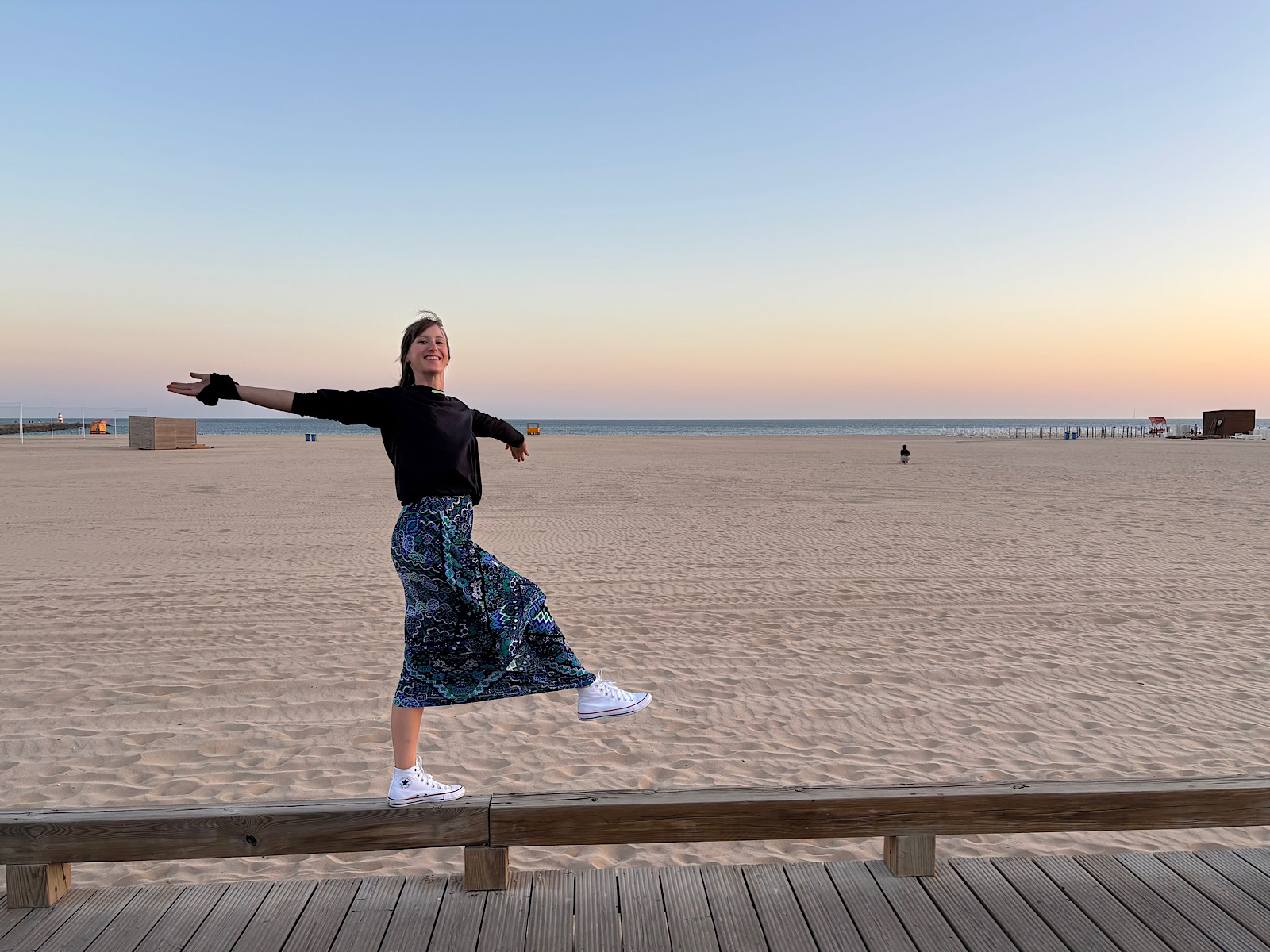 Angekommen in Portimão will Pia gleich wieder weg, da es viel zu windig ist. Nachdem sich unsere durchgeschüttelten Gehirnzellen der Reihe nach alle wieder einschalten, können wir zuerst eine Dusche und dann eine Pizza in diesem touristischen Ort mit seinen weitläufigen, feinsten Sandstränden genießen. Die Nacht ist so ruhig, dass wir uns kurzzeitig sicher sind, in der Luft zu hängen und nicht mehr im Wasser liegen – Das ist eh ein Schwimmsteg, oder?