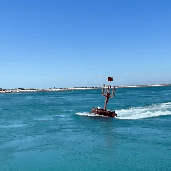 Gezeit: Die schmale Einfahrt zur Lagune ist mit einem künstlichen Wellenbrecher versehen und erstmals und immens wirken die Gezeiten des Reviers auf uns. Wir nähern uns ca. 1,5 h vor Hochwasser vorsichtig an und die 6 kn starke Tidenströmung saugt uns in die Flusslandschaft hinein wie Rohrpost. Wie auf einer Wildwasserbahn flitzen wir mit 10 kn (das sind immerhin 18 km/h!) im Slalom an den Lateralzeichen vorbei.
