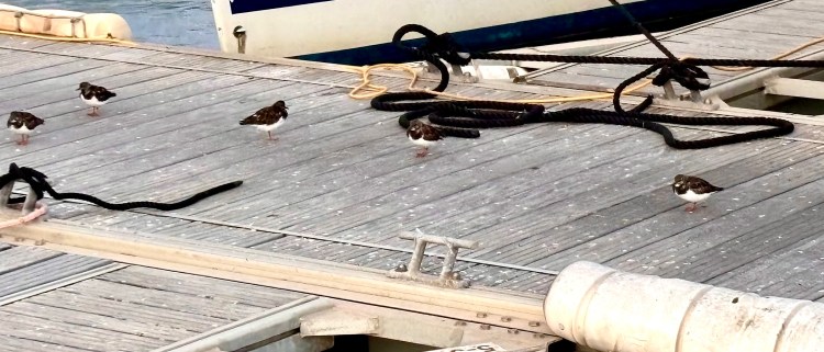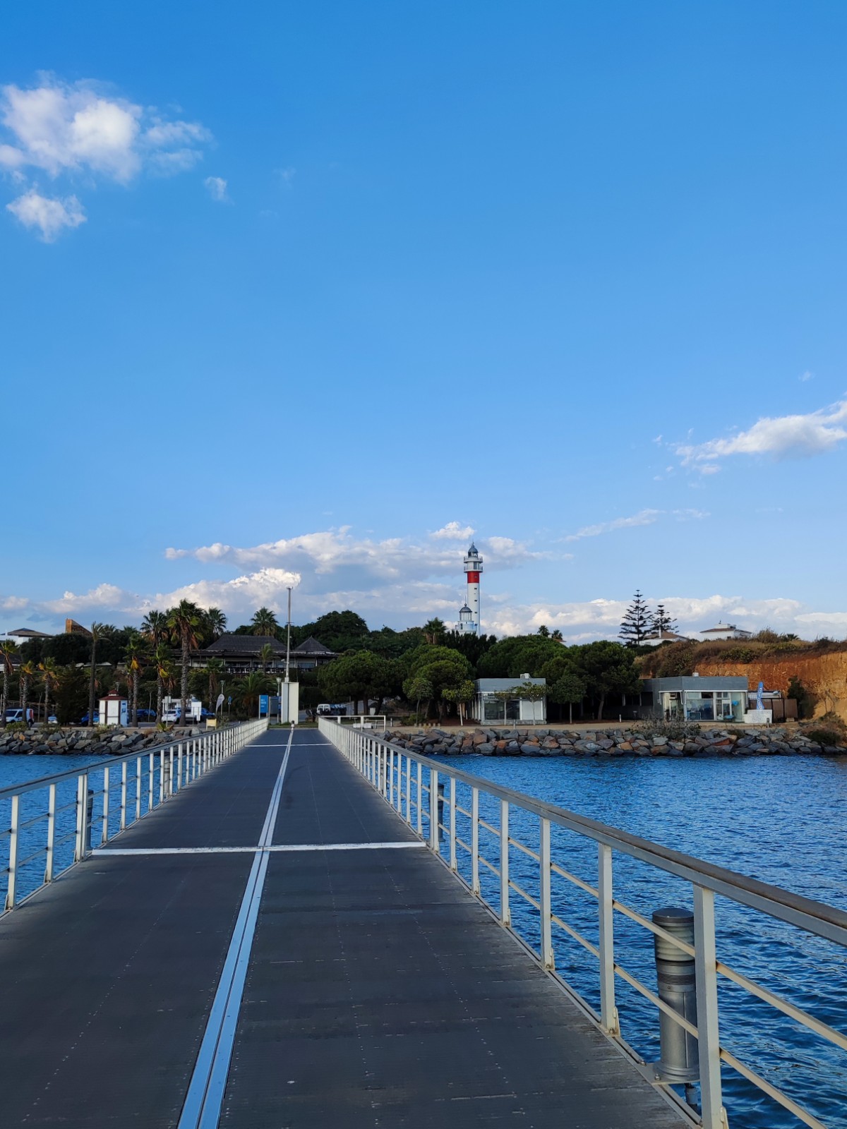 Gehzeit: Da der Ort im Grunde nur eine große Golfanlage ist, verbringen wir den Abend nach einem 15-minütigen Spaziergang und zwei spanischen Bieren am Boot mit Segelspaghetti™. Während wir in einer außergewöhnlich ruhigen Nacht schon in der Koje liegen, legen die Steinwälzer am Steg mit ihren langen Beinen und spitzen Schnäbeln noch einige aufgeregte Meter zurück. ¡Hola costa sur española!