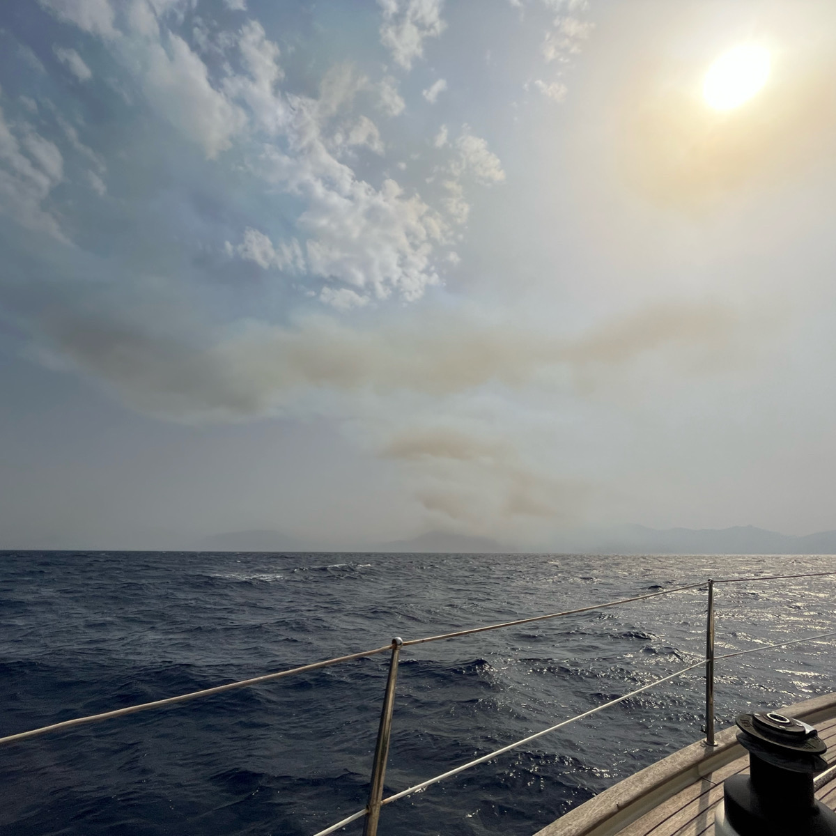 Nach zwei Nächten geht es etwas planlos weiter Richtung Westen an dieses eine Kap ganz im Nordwesten von Sizilien – wo sind wir eigentlich? Hübsch ist es jedenfalls. Noch vor Einsetzen des Mistral beobachten wir mehrere Brände an der sizilianischen Nordküste, wobei kurz sogar Asche auf uns herab regnet.