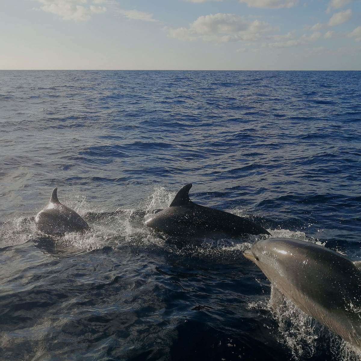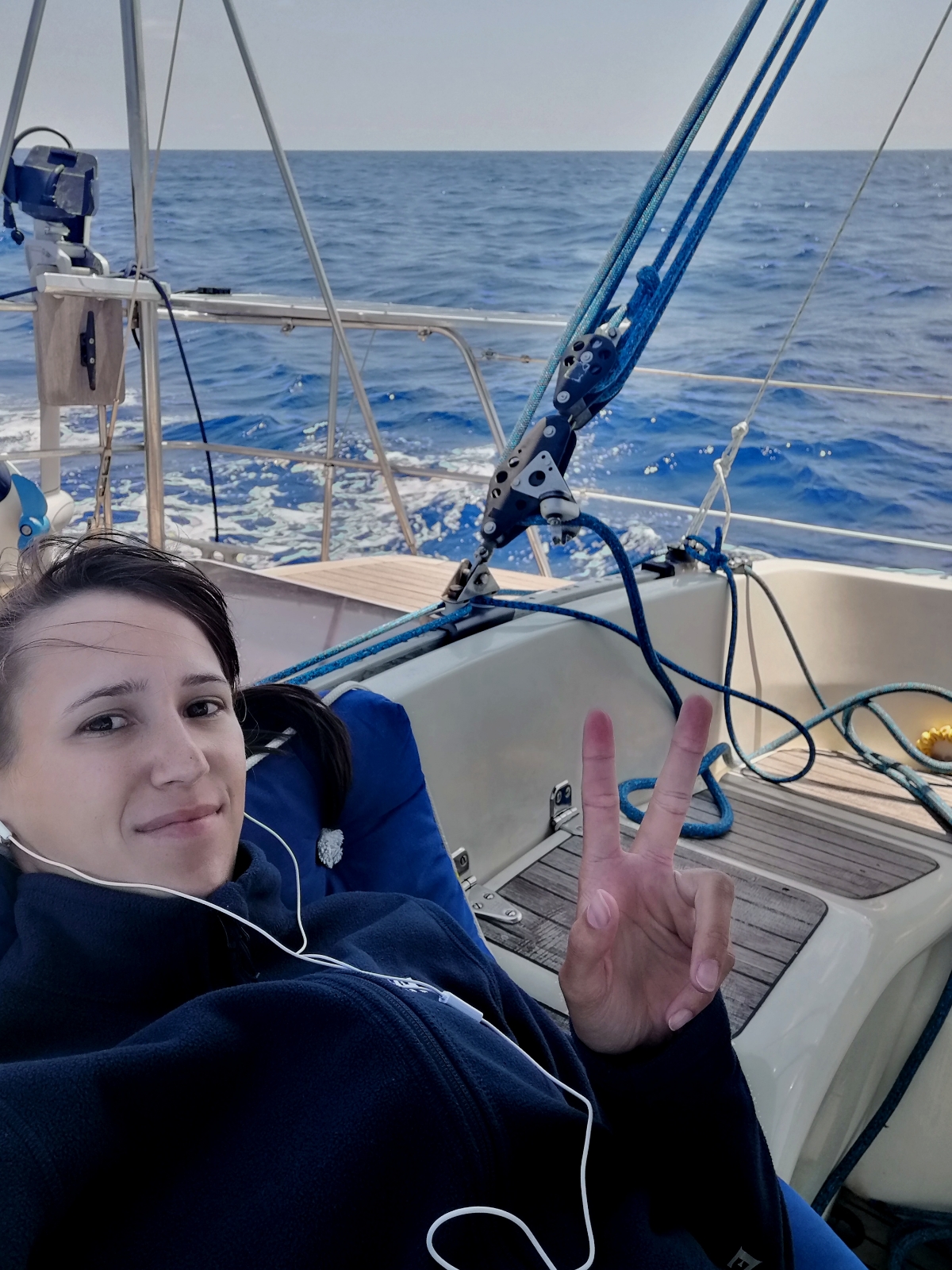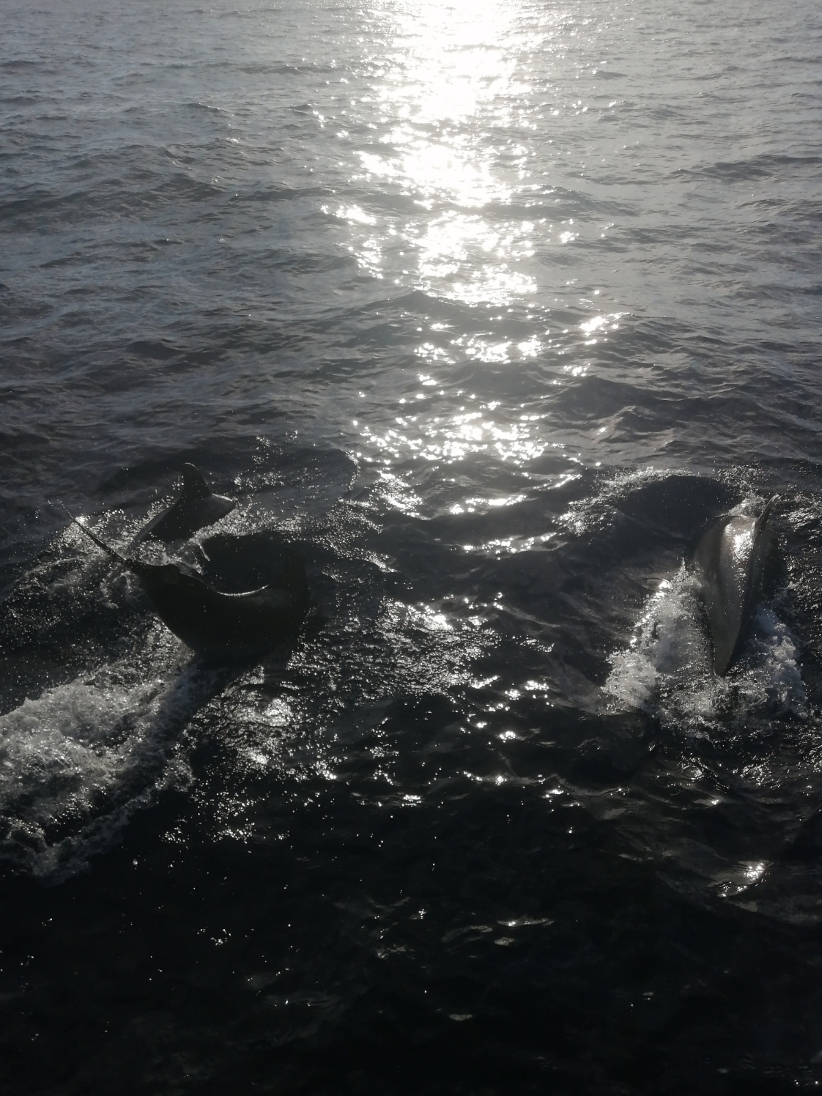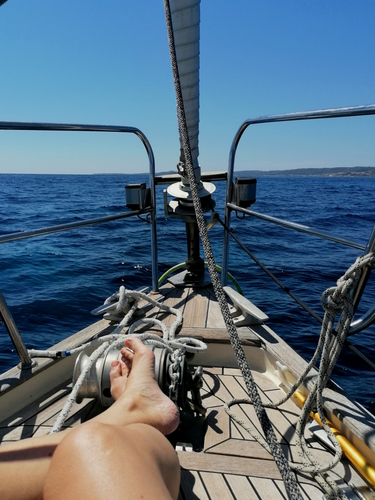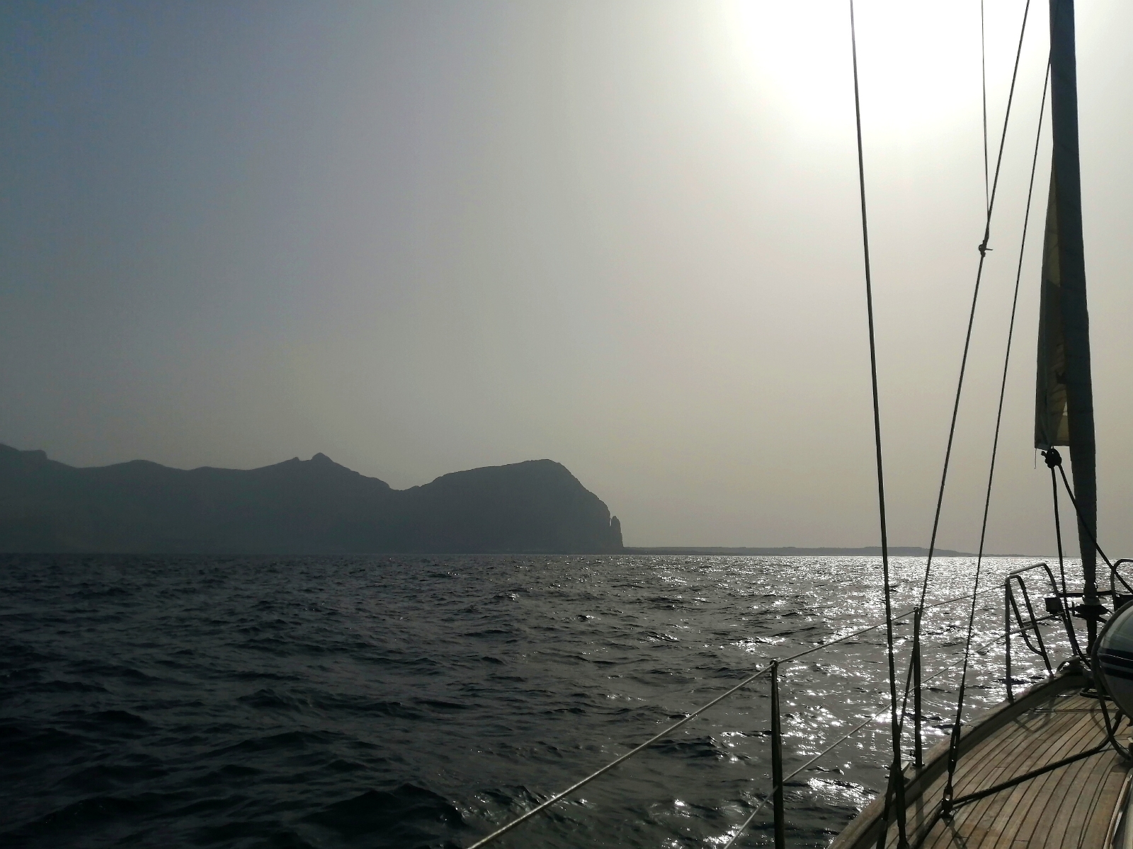 Die Überfahrt von Sizilien nach Sardinien verläuft besser, als ich es zu hoffen gewagt hätte. Schon viel Flaute, aber moderate Welle und ein paar Highlights, wie der beeindruckend sternenklare Nachthimmel. An Tag 2 werden wir kurze Zeit von Delfinen begleitet. Mindestens 8 besonders lebensfrohe Exemplare eskortieren uns und springen wie verrückt in unserer Bugwelle umher, dass sie sich fast überschlagen.