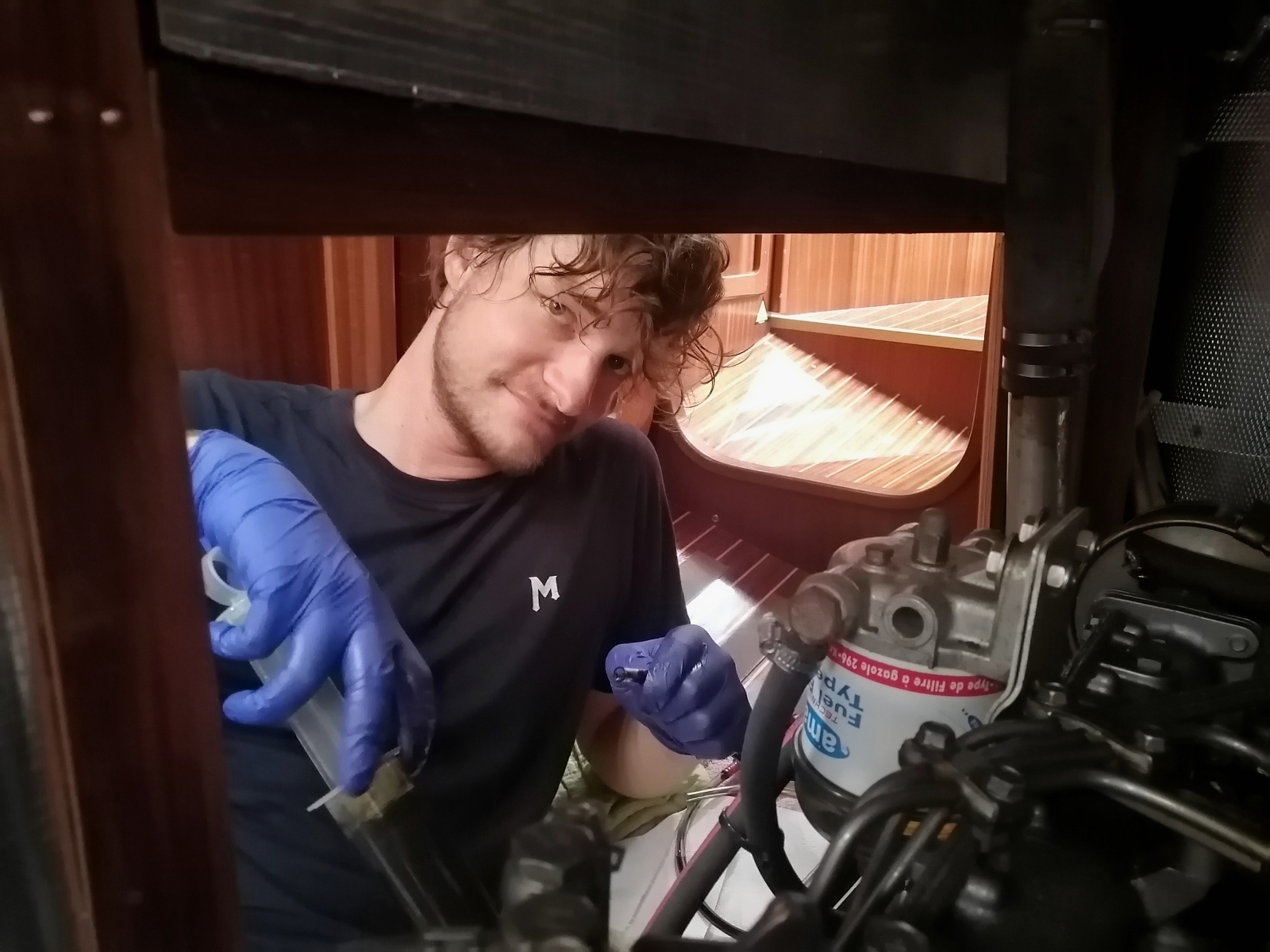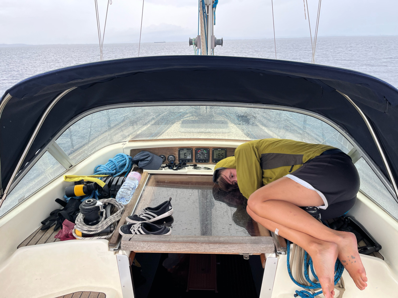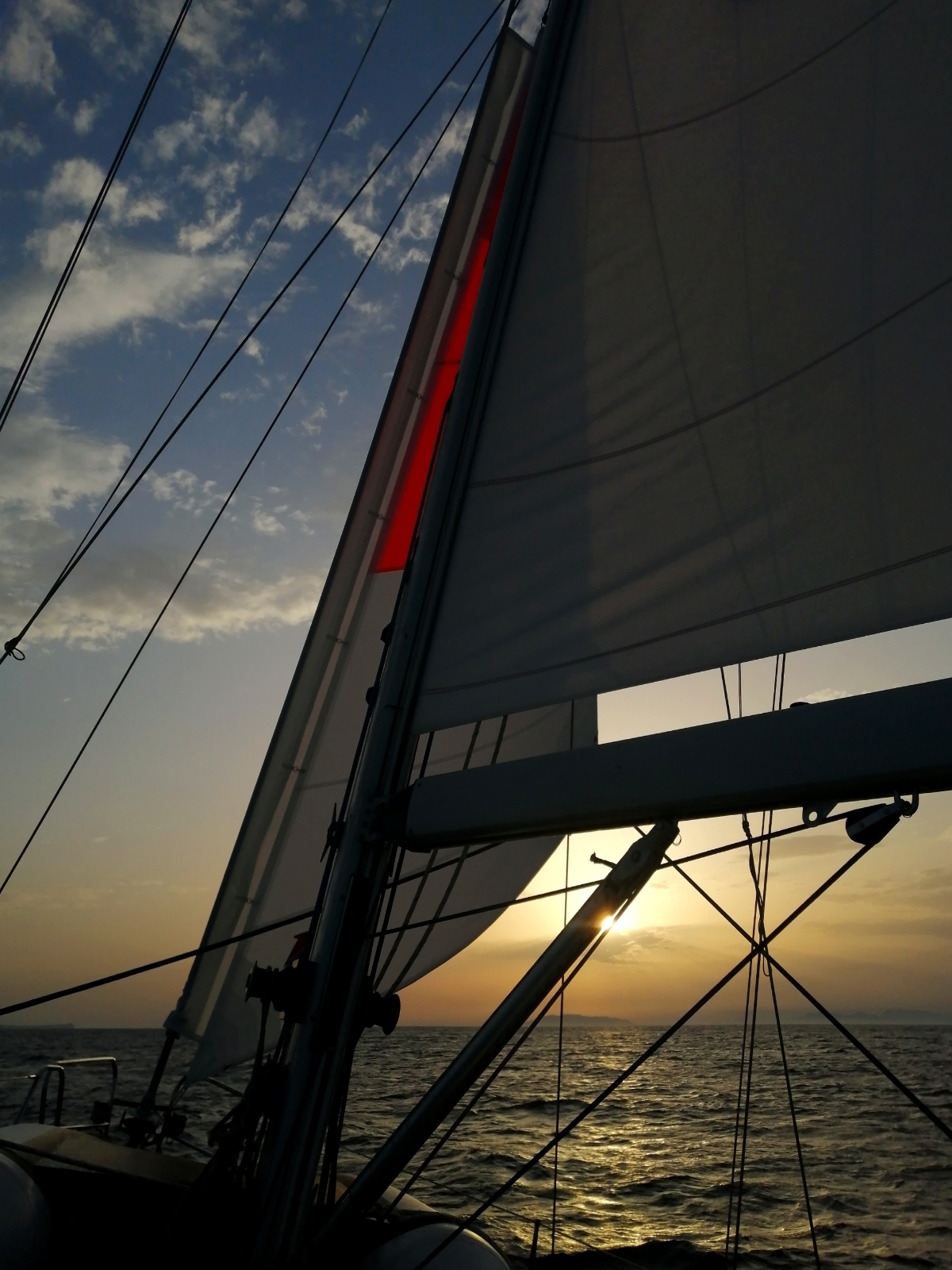 Zunächst die Reparatur der Reffanlage: Dank unserer separat zu bedienenden Sturmfock können wir während der Überfahrt etwas segeln. Wir versuchen abzuschätzen, was die Reparatur der Genuarollanlage wohl kosten wird und nachdem wir das genaue Problem nicht kennen, liegen unsere Schätzungen zwischen 100 € (ein ehrfurchtgebietender Blick des Riggers) und 4.000 € (ein komplett neues System einbauen lassen). Oft liegt die Wahrheit in der Mitte, aber manchmal läuft auch mal was gut. Die Reparatur ist in Kürze erledigt, von einem freundlichen und kompetenten Fachmann mit dem wir uns vorab über WhatsApp Details ausmachen. Letztlich fehlen nur sechs Schrauben (wie viele davon zum Zeitpunkt des Zwischenfalls wohl noch da waren?) und es kostet gerade einmal 150 €. Glimpflich.