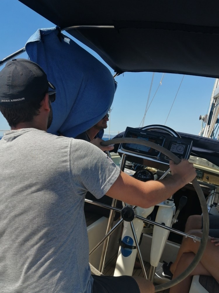 Am nächsten Tag, Freitag Vormittag, starten wir unsere bisher längste Überfahrt von Lefkas in die Straße von Messina – und das nur zu zweit. Der Schlag hat von allem etwas: Die beiden ersten Tage können wir weite Strecken entspannt bei Halbwind segeln. Die beiden Nächte und Tag 3 sind (unent)spannender. Die erste Nacht ist gezeichnet von Gewittern. Genau auf unserer Route eine Wand von Blitzen. Mit Hilfe des Radars manövrieren wir uns trockenen Fußes und ohne Detonationen durch die Zellen. Es fühlt sich kontrolliert und trotzdem absolut unheimlich an! Ab dem Sonnenuntergang an Tag zwei sind Wind und Welle gegen uns. Um 1:20 Uhr passiert es: Beim Versuch die Genua zu setzen löst sich die Rollanlage vom Vorstag und die Genua rauscht aus. Das heißt: Volles Zeug bei stärker werdendem Wind ohne Reffmöglichkeit. Wir gehen auf Nummer sicher und bergen die Genua über das Fall – ein Kraftakt bei 20 kn Windgeschwindigkeit. Mit dem Motor geht es dann noch 20 Stunden weiter gegen die Welle. Um 21:20 liegen wir nach 280 sm in der Marina Villa San Giovanni, die wir schon vom letzten Jahr kennen. Bier, Pizza, Schlafen.