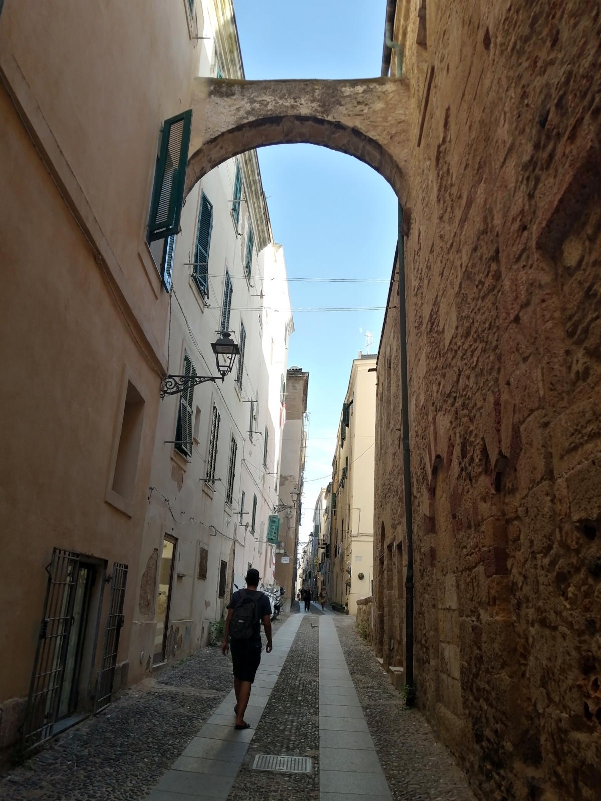 Zweckmäßig, ohne jede Erwartung, allerdings mit Empfehlung unseres Hafenhandbuchs und von Pez gemäß Hörensagen, haben wir Alghero als unseren letzten Hafen vor der Überfahrt auf die Balearen auserkoren. Das bedeutet auch: Alghero wird der Ort sein, an dem wir Italien nun endgültig hinter uns lassen. Versöhnlicher könnte der Abschied kaum sein. Die Stadt überrascht uns und sie ist wahrscheinlich unser bisheriges Highlight. An der Altstadtmole können wir 2 Tage gratis liegen – ohne jegliche Infrastruktur aber sehr gut geschützt. Dass es sowas tatsächlich gibt! Mit optimaler Ausgangslage erkunden wir also die sehr beschauliche Stadt und können diverse länger anstehende Einkäufe und Arbeiten am Schiff erledigen, z.B. unseren ersten Ölwechsel und die Wartung der Genuawinschen.