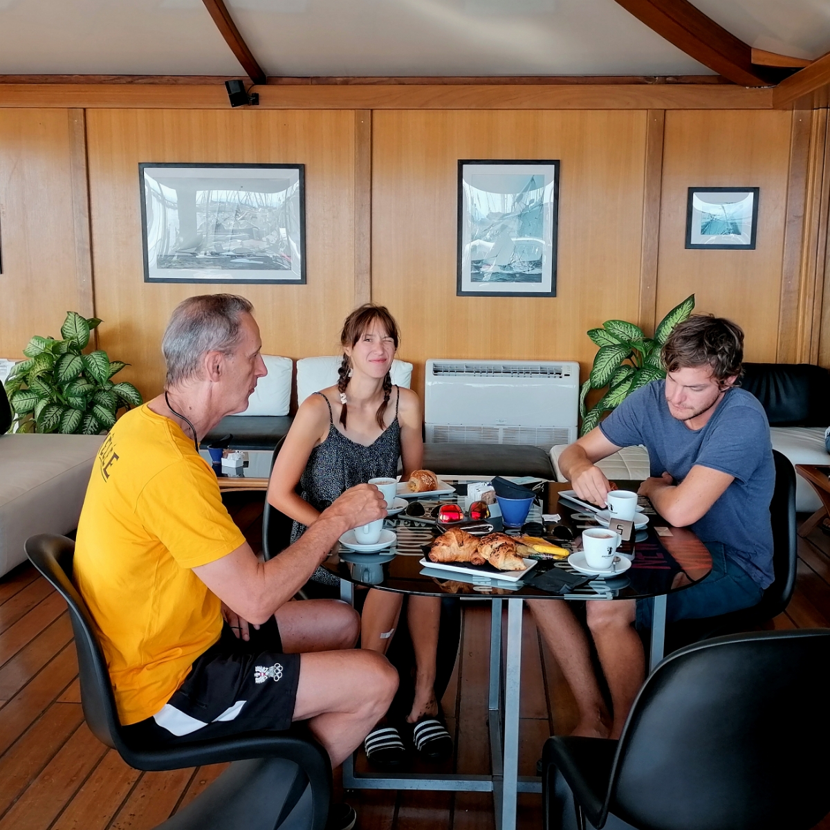 Nachdem uns Andi und Benni verlassen haben, machen wir mit Jan, einem Mitarbeiter der ARC, eine virtuelle Sicherheitsinspektion unserer Mêlée. Das ist nicht nur sehr hilfreich, sondern macht richtig Spaß und wir haben jetzt einen sehr genauen Plan was uns noch fehlt, um fit für den Atlantik zu sein.
