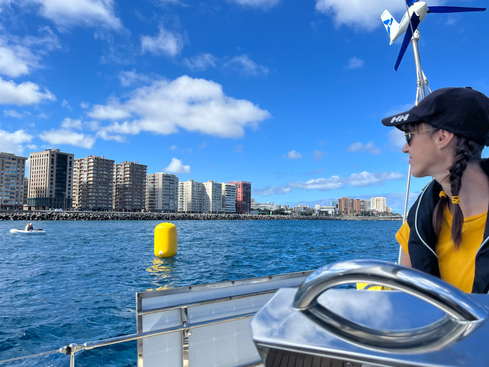 Mit Musik, Flaggen und winkenden Zusehern werden wir aus der Marina verabschiedet und begeben uns in den Startbereich gleich vor dem Hafen. Der Start der Touristenregatta ARC+ verläuft zäh bei kaum Wind. Einmal über die Startlinie gedümpelt sind wir unter den ersten, die den Motor einschalten. Insbesondere da unsere Segel gegen das neue Rigg schlagen, verzichten wir hier darauf besonders seemännisch zu sein und räumen drei Stunden lang das Feld von hinten auf. Motorstunden werden grundsätzlich dokumentiert und uns am Ende als Malus dazugerechnet. Als Wind einsetzt werden wir, wie erwartet, sukzessive wieder von allen Seiten überholt.
