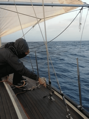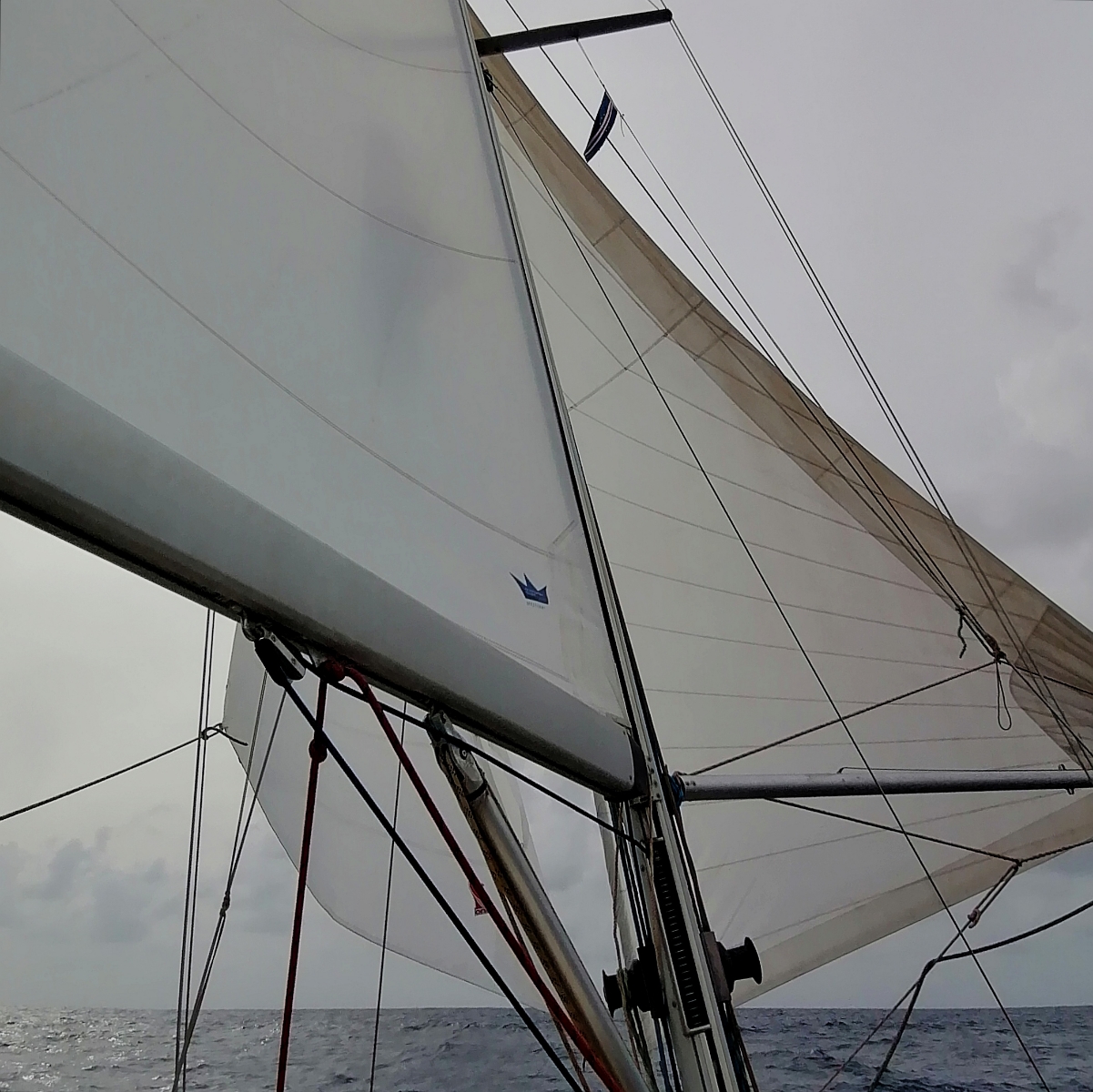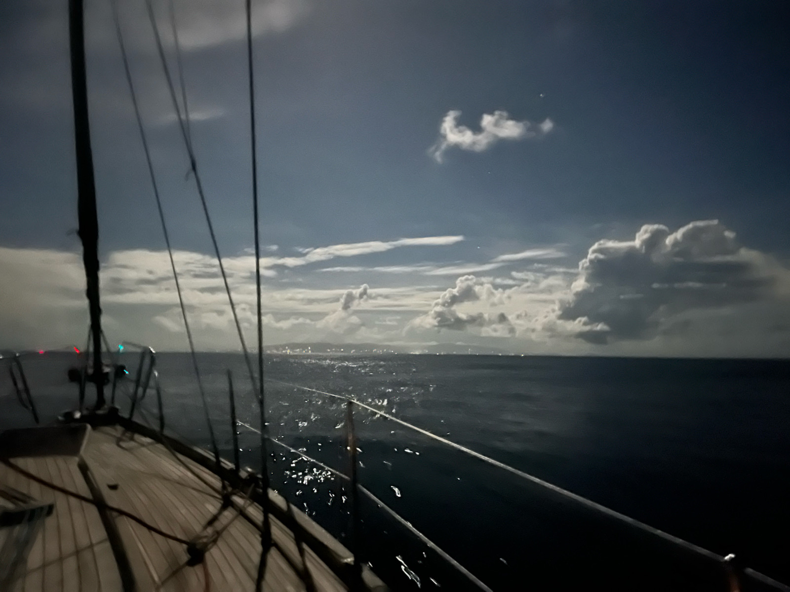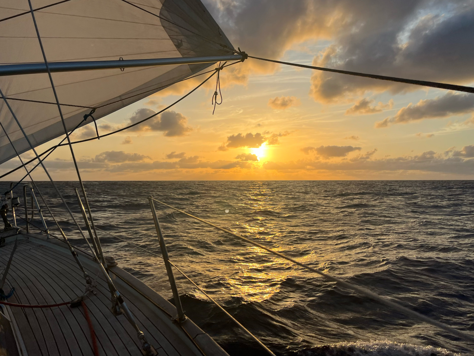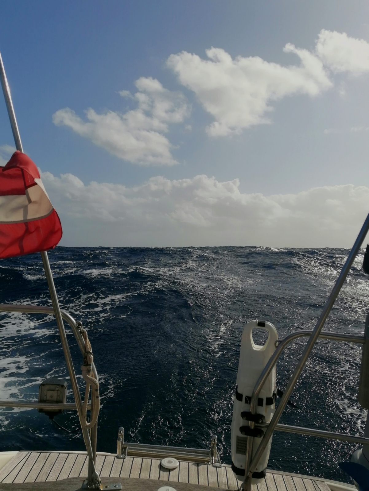 Die letzten 200 sm ist es endlich warm, auch nachts. Das Ölzeug ist verstaut, Pulli und lange Hose tragen wir nur noch, weil wir dieser Situation noch nicht ganz trauen können. Die letzten zwei Nächte waren angenehm, die Welle ruhiger. Wir kämpfen noch mit dem perfekten Kurs und regelmäßigen Winddrehern. Die häufiger auftretenden Squalls wirken nicht mehr ganz so bedrohlich wie anfangs. Wir nutzen den damit einhergehenden stärkeren Wind um schneller zu sein.
