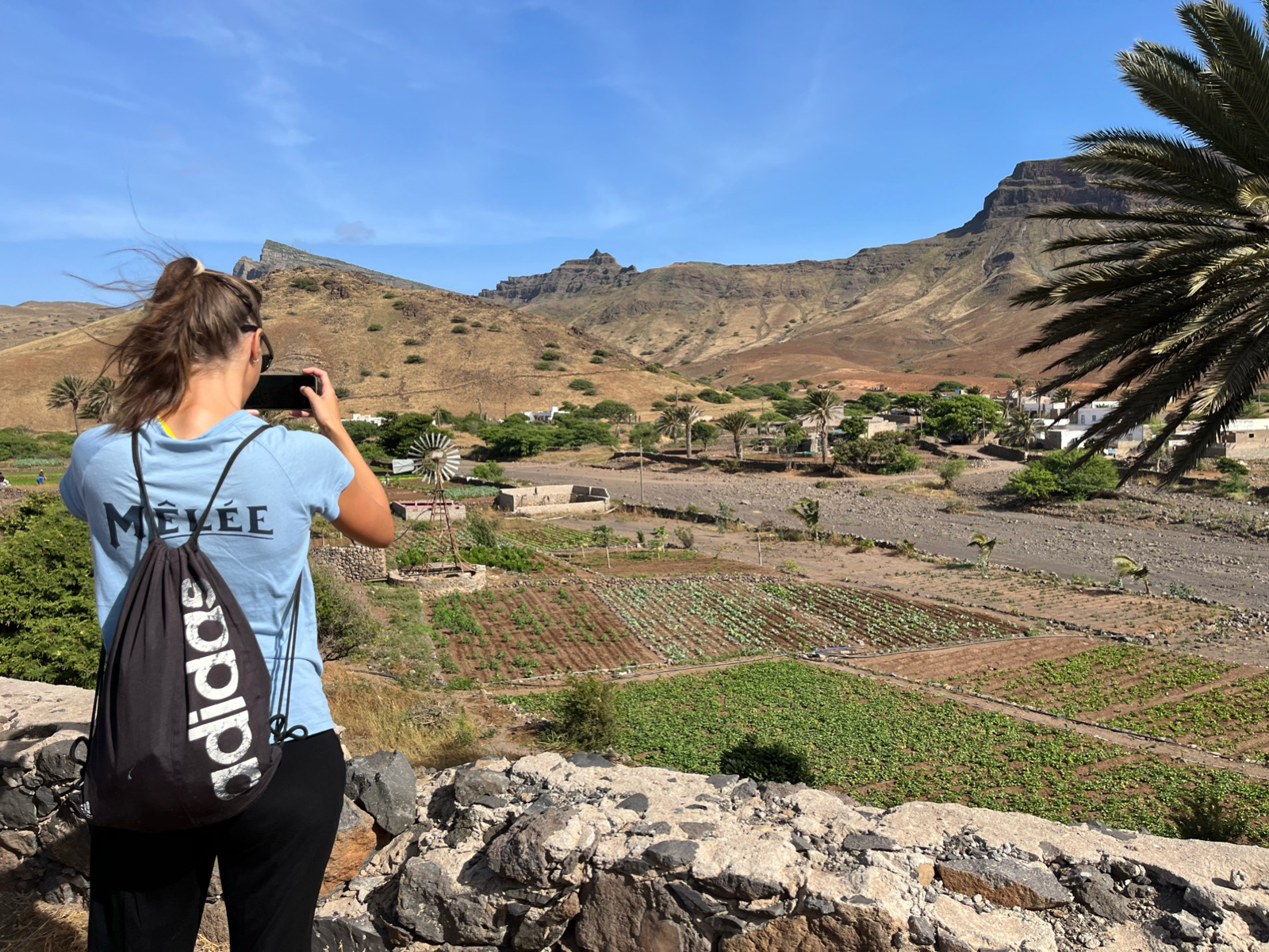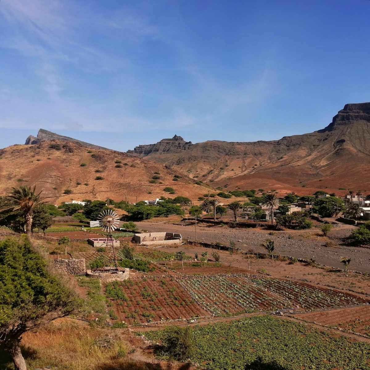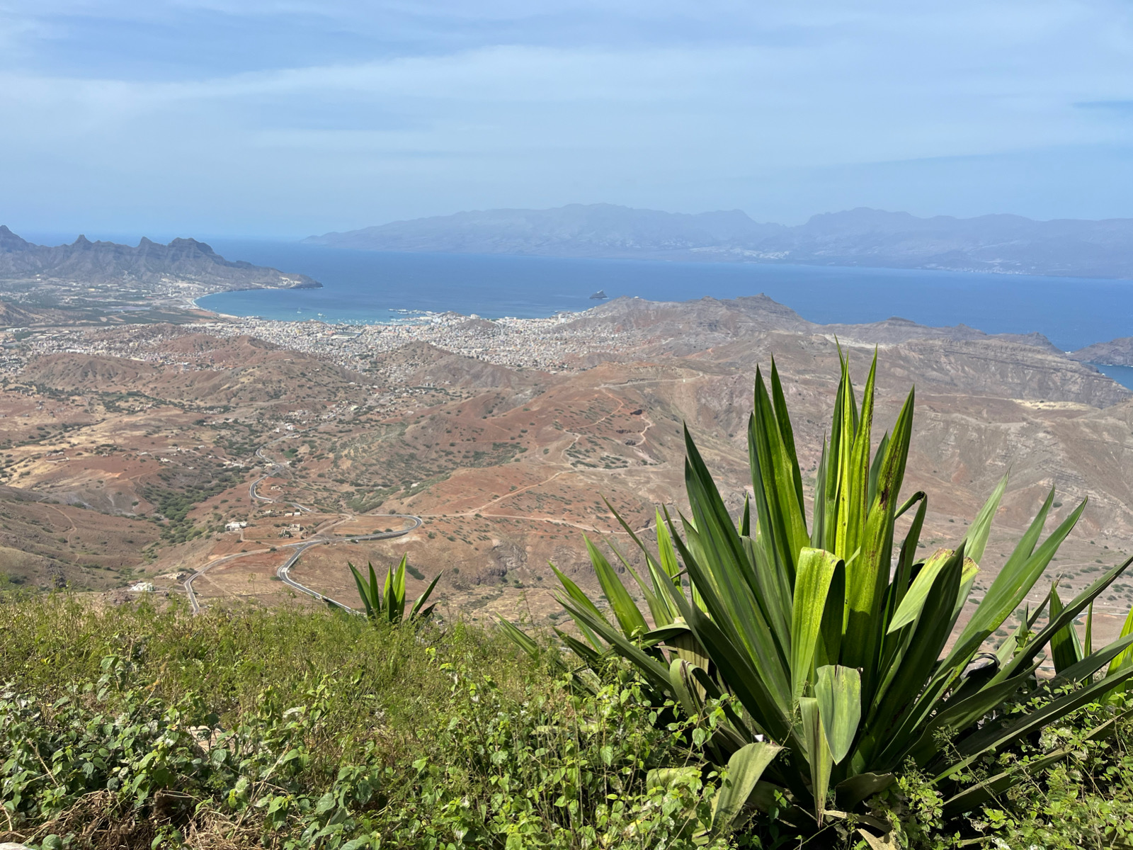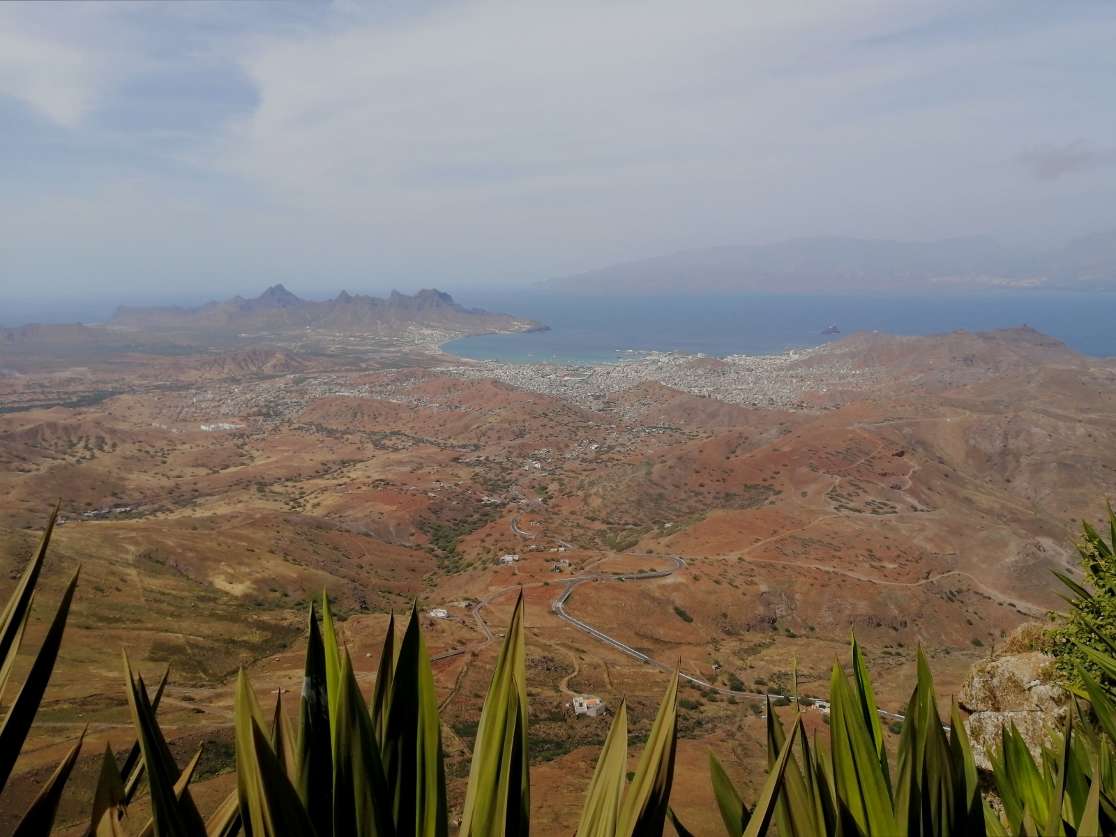 Unabhängigkeit: 1975, von PortugalAm Montag Vormittag nehmen wir an einer kleinen Bustour über die Insel teil. In kurzer Zeit können wir so viel von den unterschiedlichen Facetten der Insel bestaunen. Die meisten kapverdischen Inseln machen ihrem Namen Ehre und sind sehr grün – nicht so São Vicente, die zweite Insel von links, auf der wir uns befinden. Ausgehend von Mindelo, der zweitgrößten Stadt der Kap Verden, fahren wir vorbei an Shrimpsfarmen zu ausgetrocknete Flächen, in denen einmal im Jahr ein Fluss entsteht, der dann wirtschaftlich genutzt wird. Dann gehts weiter zu kleinen Dünenlandschaften, bei denen sich feinster, weißer Saharasand in der sonst schwarzen, vulkanischen Umgebung ansammelt und schließlich auf den höchsten Berg der Insel mit 750 m Höhe, wo es dann doch noch ziemlich grün wird.