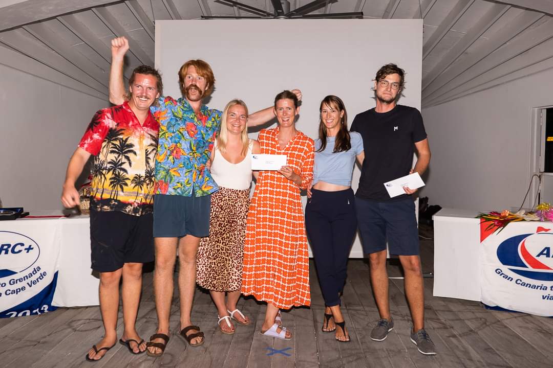 Am Donnerstag findet in einer riesigen Bar im Süden der Insel ein rauschendes Abschiedsfest mit Siegerehrung statt. Neben den schnellsten Booten in den jeweiligen Kategorien (Multihull und Monohull I bis IV) werden ein paar Sonderpreise vergeben. Als wir mit sieben anderen Crews dafür geehrt werden, einfach weil wir nur zu zweit (double handed) am Boot waren, sind wir fast ein bisschen gerührt, weil wir definitiv keinen Preis erwartet haben. Wir nennen ihn liebevoll den Preis dafür, dass wir keine Freunde haben. Doch das sollte es noch nicht gewesen sein – wir gewinnen noch eine zweite Kategorie! Aus großen Regatten wissen wir, wie unglaublich knapp oft die Zielgeraden passiert werden, nachdem tage- oder wochenlang geseglt wurde. Wir können mithalten. Nach fast 18 Tagen auf See erreichen wir, dank Lomvis Badeausflug, das Ziel nur 2 Minuten und 16 Sekunden vor ihnen. Für diese Leistung gewinnen wir noch einen Restaurantgutschein.