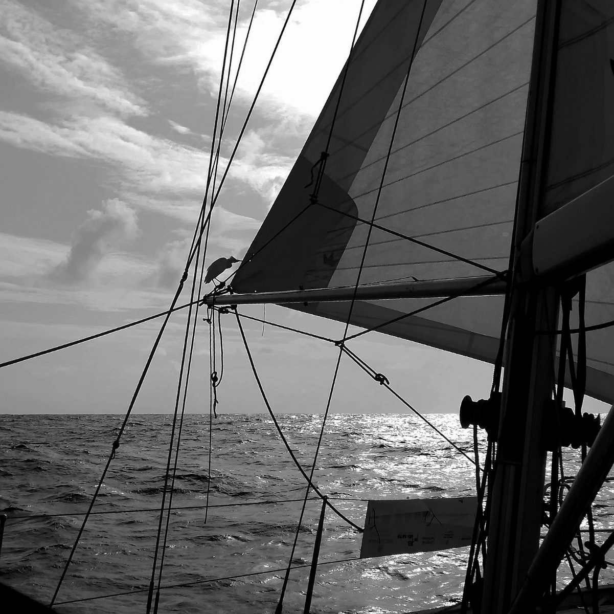 Szenenwechsel. 2100 Crew und Vogel vereint gegen Sturm und Regen in der hereinbrechenden Nacht. Die Aufmüpfigkeit des Tages ist verflogen und es zeigt sich die schwer vom Ozean gezeichnete, müde und zerrupfte Wahrheit. Auch der Vogel schaut nicht gut aus. Als der Sturm sich legt, verbringt er die Nacht mit dem Schnabel unterm Flügel ruhig und friedlich. Immerhin bleiben am nächsten Morgen die an Bord gehüpfte Fische nicht lange an Deck liegen.