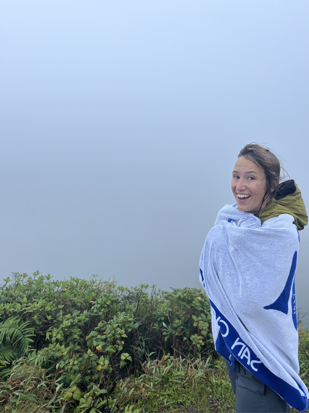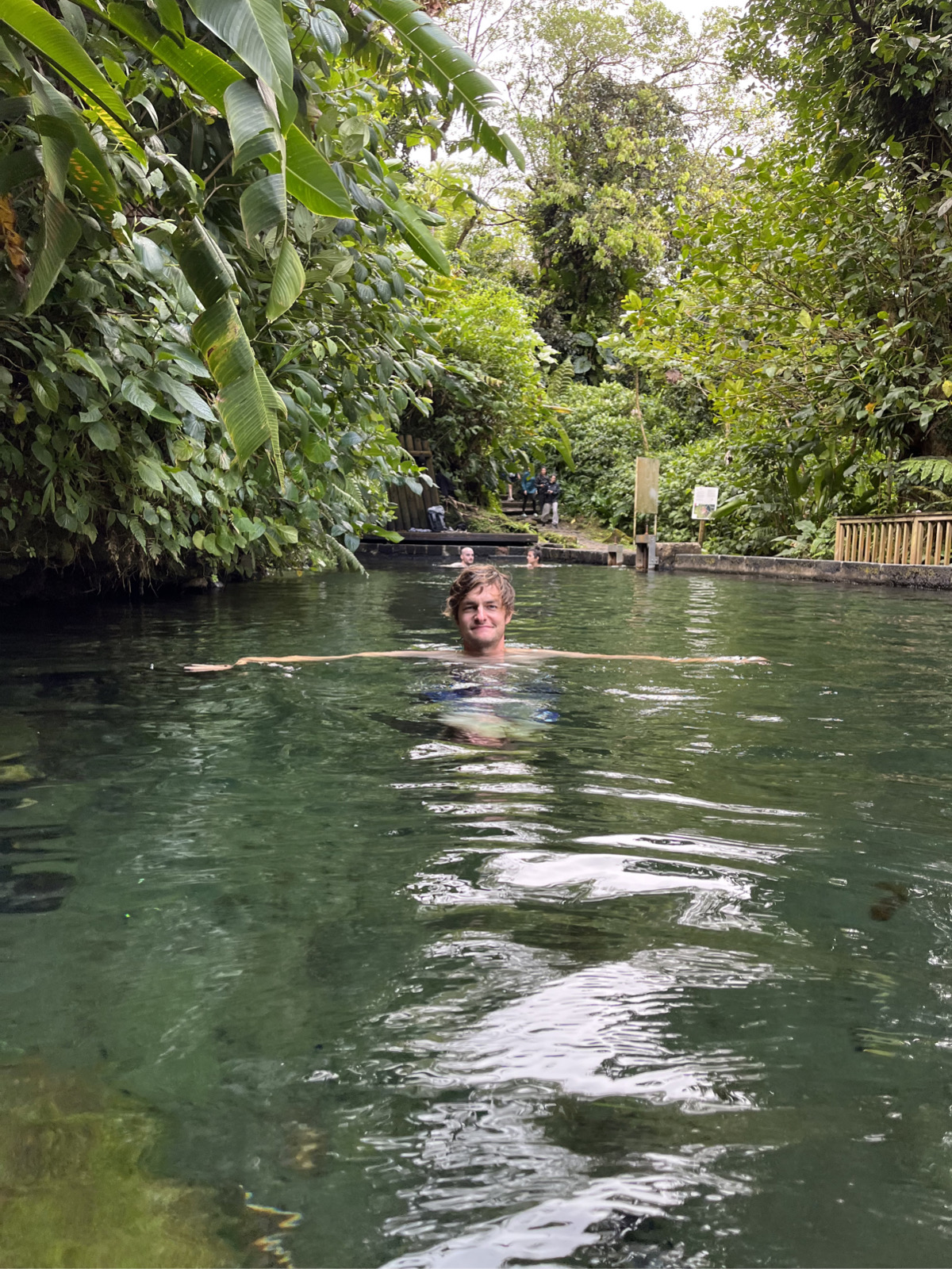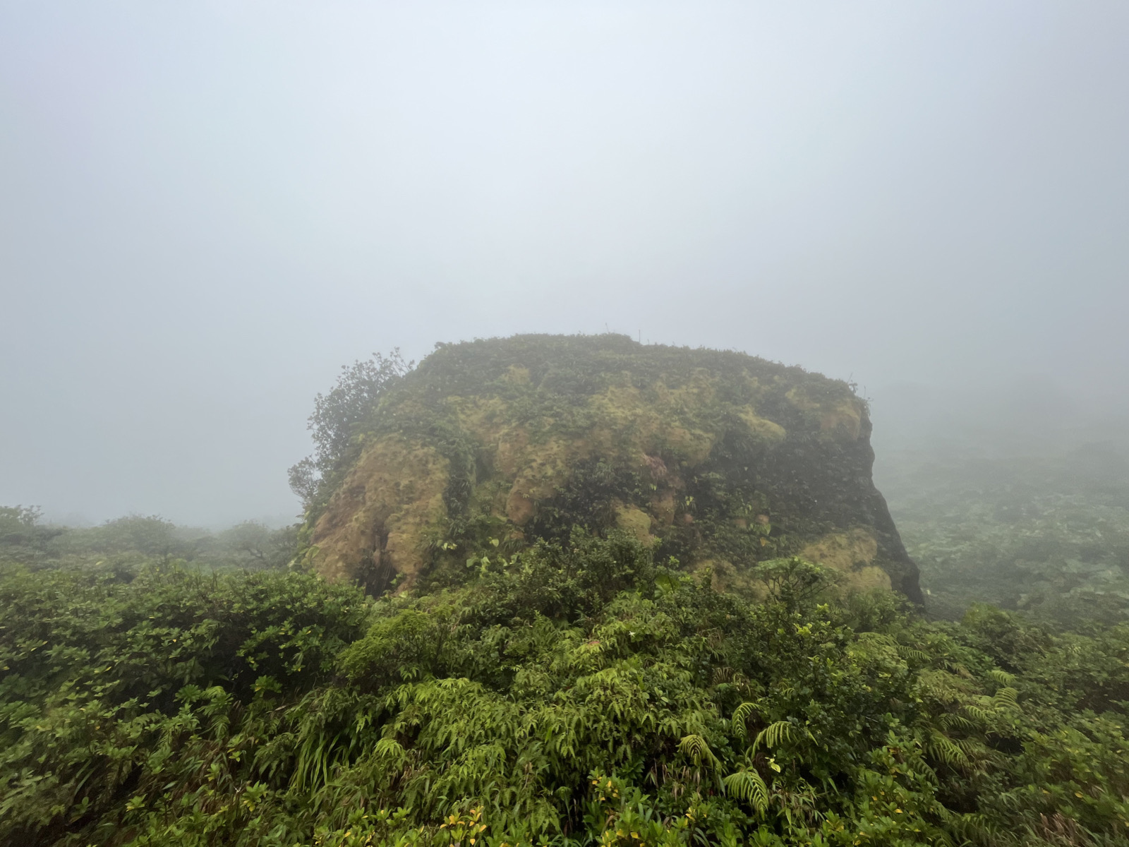Am nächsten Tag schlängeln wir uns dann aber motorisiert die Serpentinen nach oben, um den Vulkan La Soufrière (liebevoll auch Soufflé) zu bestaunen. Der Weg zum eigentlichen Vulkankrater ist leider wegen Sturmschäden gesperrt. Dann gibts noch den imposanten Lac Flammarion, einen dampfenden See. Der Weg zum See ist komplett nebelverhangen. Zu Sehen gibts für uns nix, dafür mit Sturm, Nebel und Kälte ein kleines bisschen Heimatgefühle. Am Fuße des Soufflé wurde allerdings für Besucher eine heiße Quelle hergerichtet – genau das richtige nach so einem Schitag. Also plantschen wir ein wenig in dem nach verdorbenen Eiern stinkenden und mit gehirnfressenden Amöben verseuchten Wasser und wärmen uns auf.