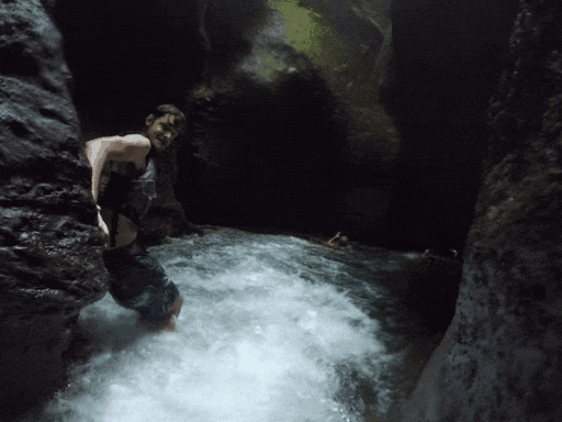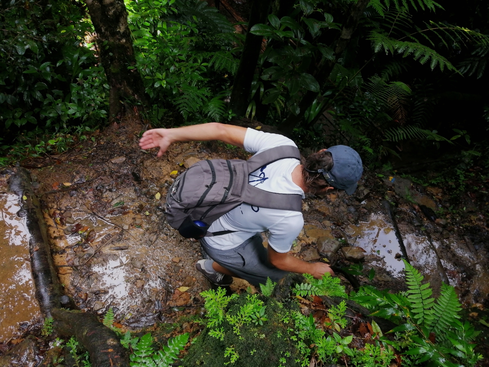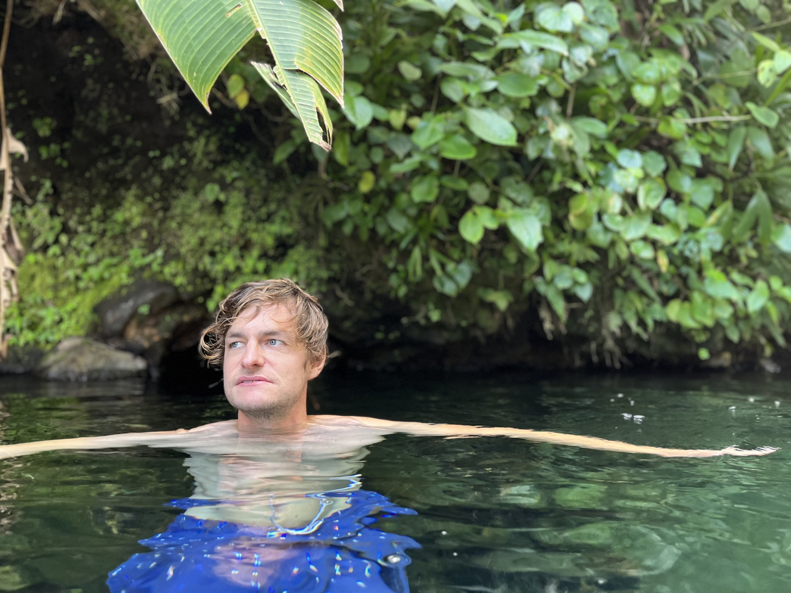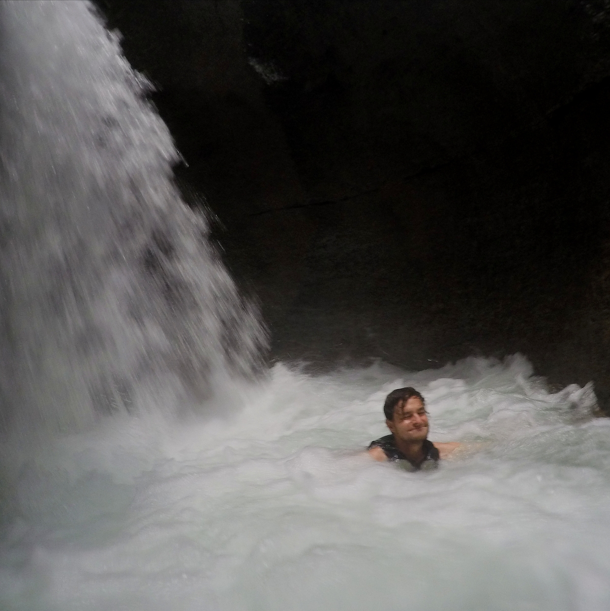 In der letzte Station des Tages, dem Wasserfall Cascade aux écrevisses nimmt Bernhard ein weiteres Bad – diesmal aber weniger stinkend und eher belebend.