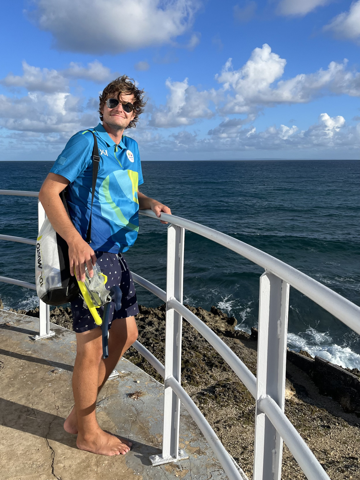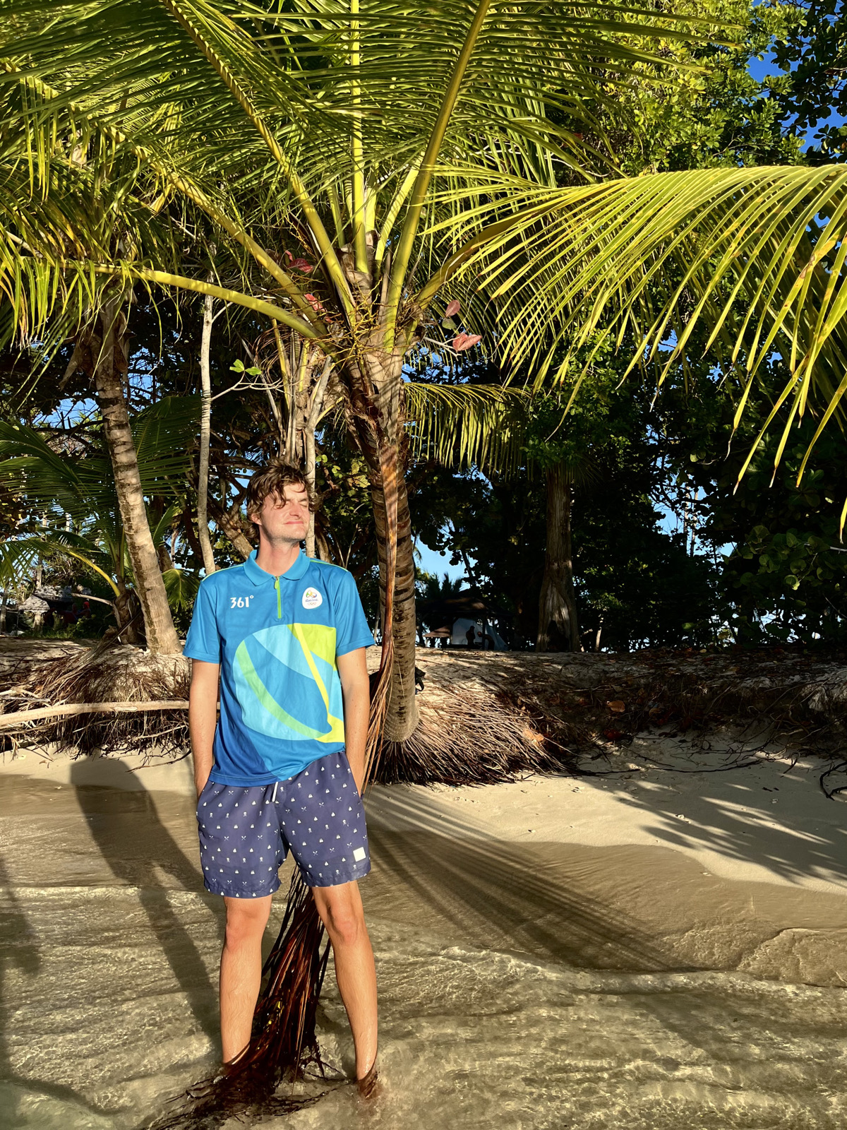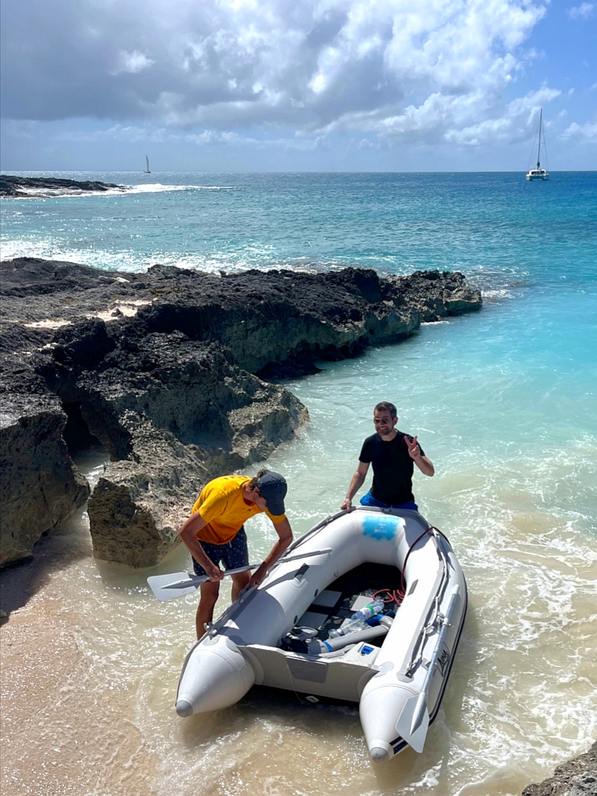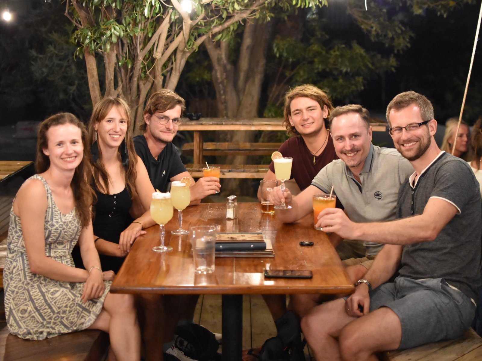 Zum anderen schaffen wir es genau zum Sundowner noch in die malerische Indigo Bay, wo wir mit einer Runde Bier und Wellenplantschen auf das erfolgreiche Zusammentreffen in der Karibik anstoßen.