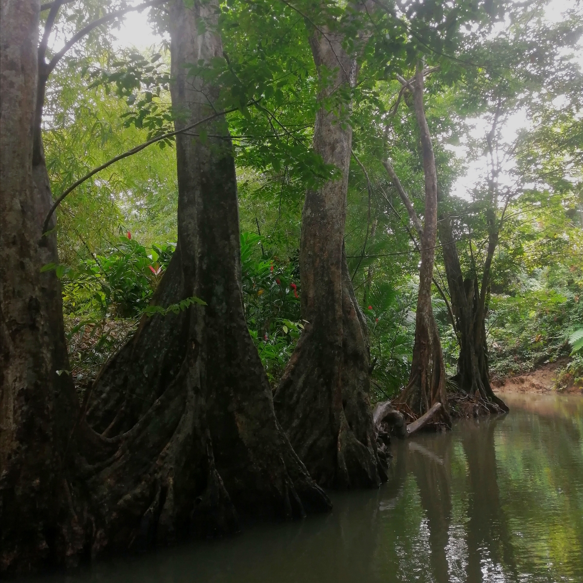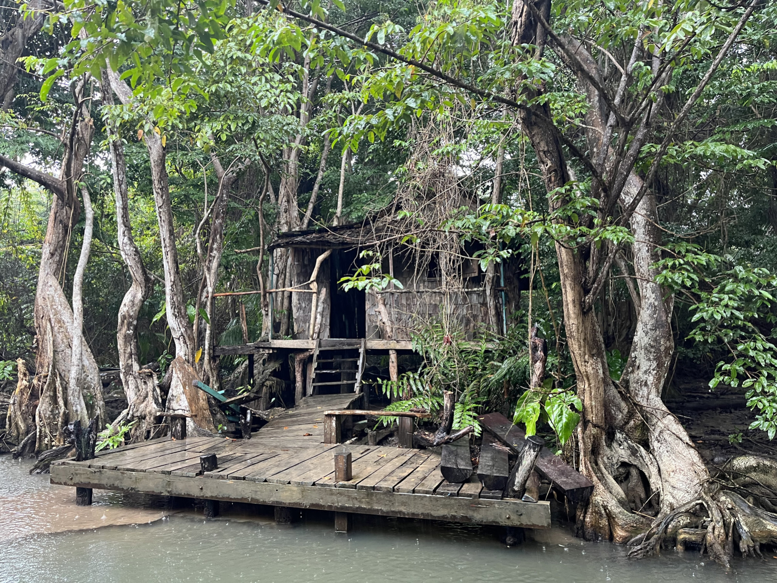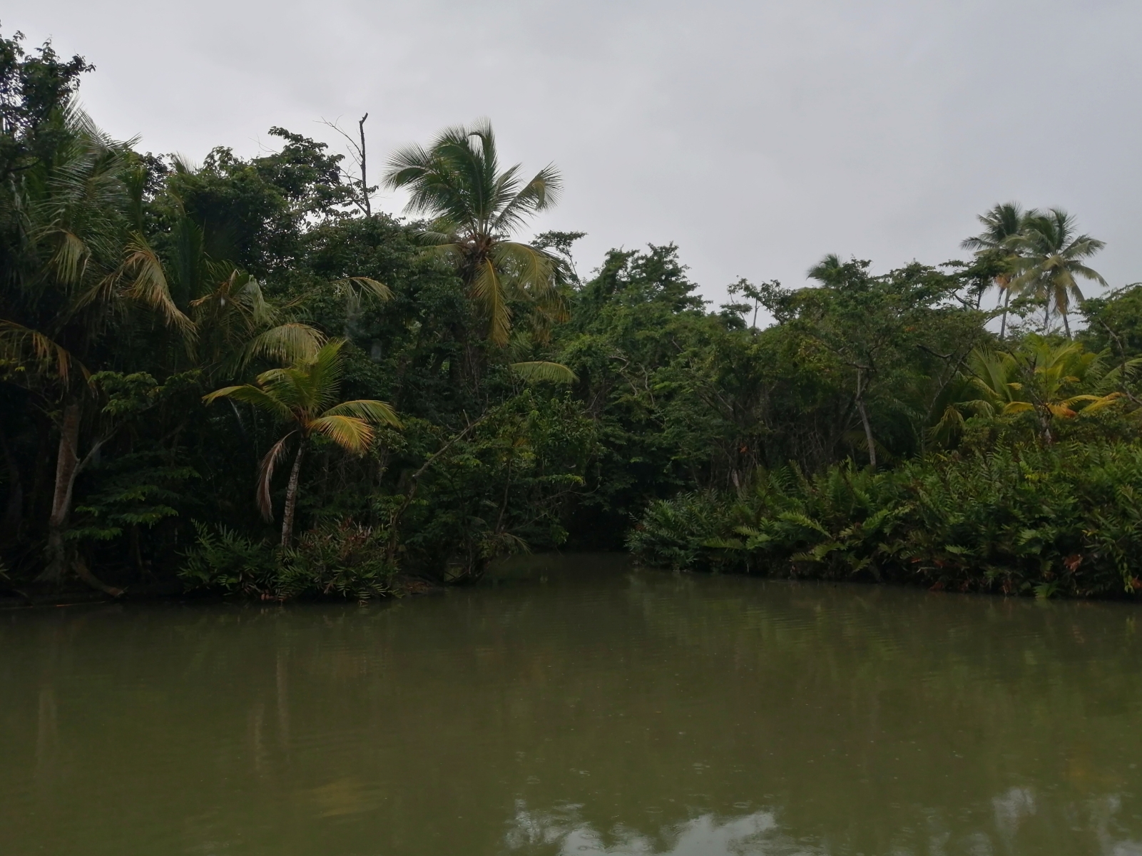 Nach zwei Nächten im Süden begeben wir uns in den Norden der Insel, wo wir in Portsmouth noch einmal zwei Nächte an der Boje in einer viel hübscheren Bucht mit zahllosen anderen Segelbooten verbringen. Boatboy Avin, seines Zeichens auch zertifizierter Island Tour Guide, empfängt uns herzlich und wir arrangieren eine Tour auf dem Indian River für den Folgetag. Die Flussmündung ist nur wenige Minuten von unserer Boje entfernt. In Avins Holzboot erkunden wir im strömenden Regen einen anderen Drehort aus Fluch der Karibik 2, nämlich Calypsos Hütte mitten im Sumpf. Nicht nur als Fans der Filmreihe sind wir beeindruckt. Johnny Depp ist hier Boot geschwommen! Bei einer anschließenden kurzen Wanderung durch die Mangroven bekommen wir noch ein paar Sonnenstrahlen ab.
