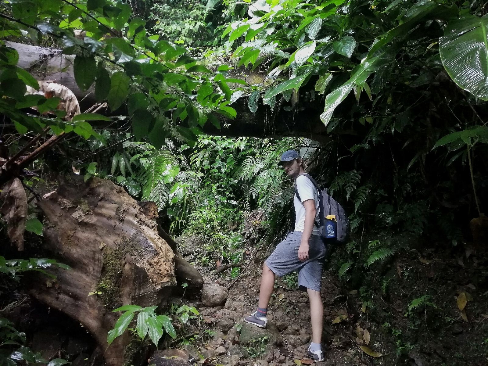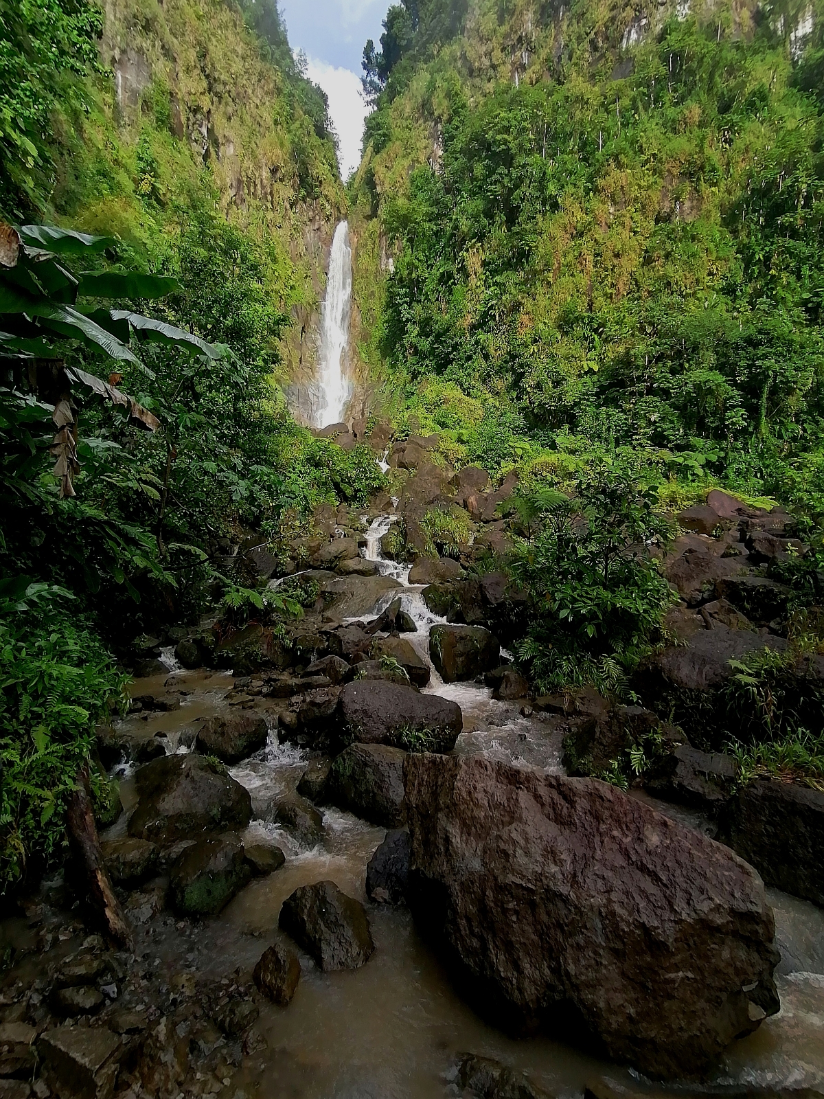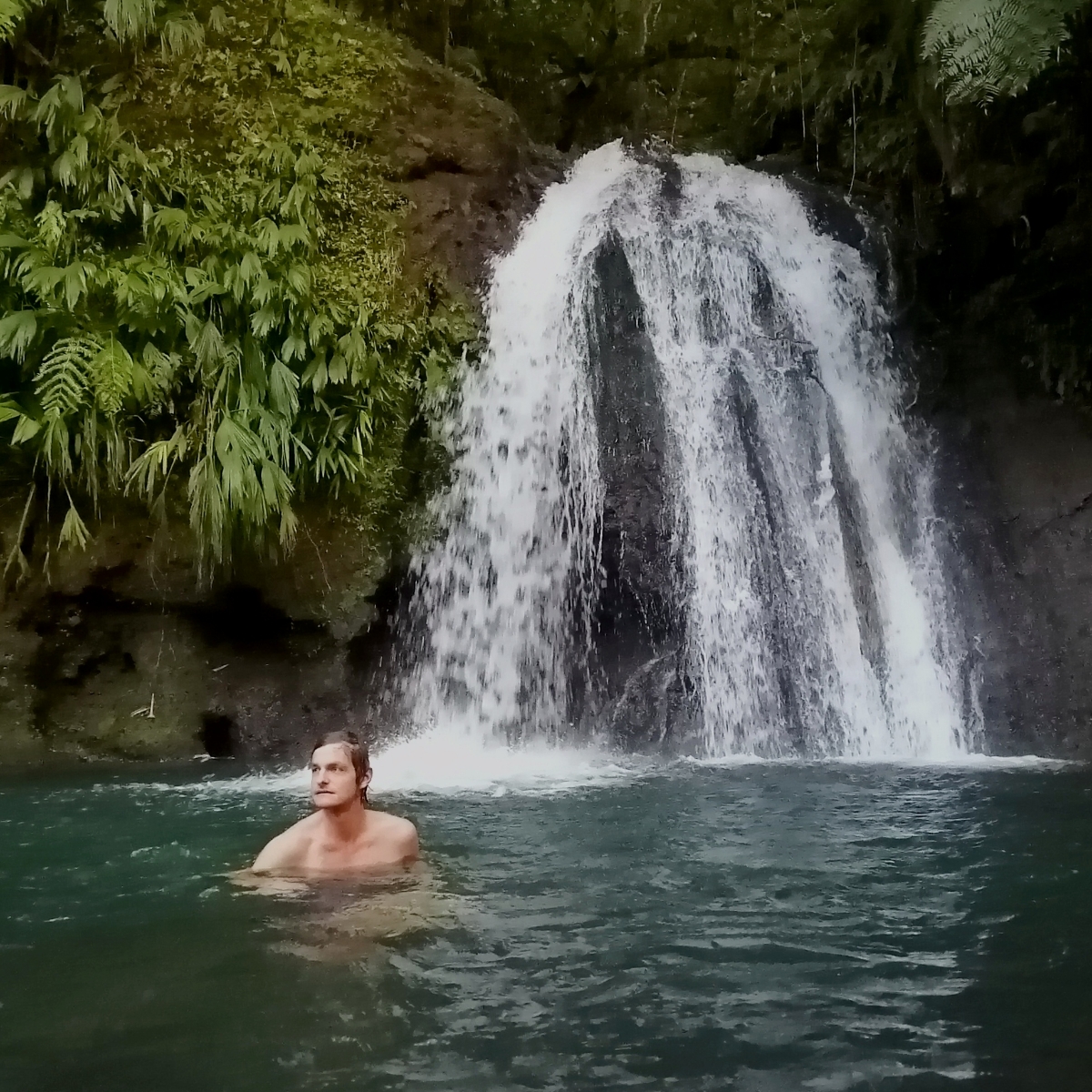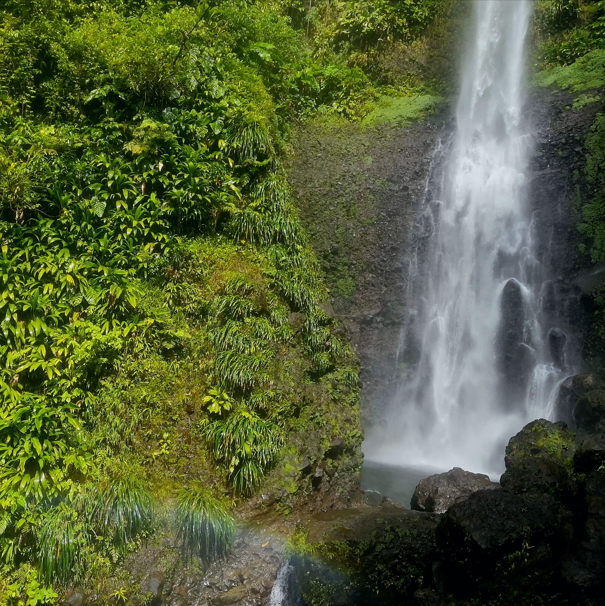 Erstmals seit wir in der Karibik unterwegs sind, sehen wir mehr von einem Land als die unmittelbare Küstenregion. Und zwar in einer sechsstündigen Tour gemeinsam mit Guide Dr. Jones und Jim & Marianne vom knallorangenen kalifornischen Katamaran Alani. Dr. Jones bringt uns in seinem Kleinbus zunächst zu den Middleham Falls. Der Besuch des Wasserfalls erfordert eine einstündige, matschige und ausgesprochen anspruchsvolle Wanderung über Stock und Stein und den ein oder anderen Fluss durch den Regenwald. Der Weg ist das eigentliche Highlight – Wasserfälle kennen wir schon, Regenwald ist für uns neu. Pia hat Tage später noch Muskelkater.