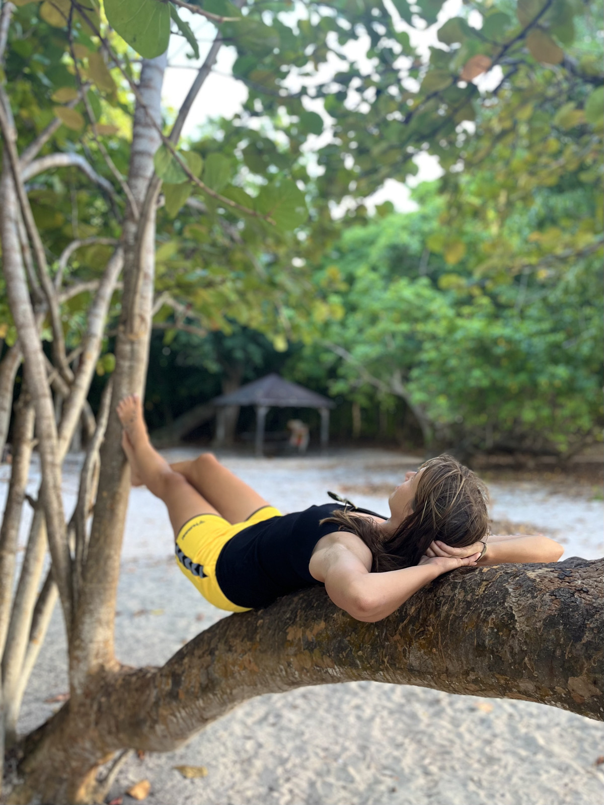 Eine weitere Minietappe führt uns raus aus dem Riff vor die winzige, unbewohnte Insel Gosier – ein besonders idyllischer Sandhaufen mit Leuchtturm. Am späten Nachmittag ziehen hier die Landtouristen ab und Segelcrews machen es sich mit Sechsertragerl gemütlich. Wir spazieren die Insel einmal auf und ab, erklimmen den Leuchtturm, sammeln hübsche Korallen und entdecken unsere Zuneigung zu Einsiedlerkrebsen.