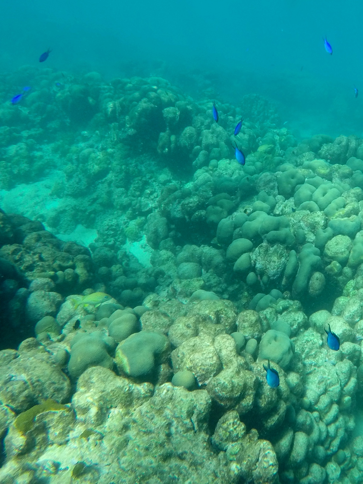 Pidgeon Island, zwei kleine Felshaufen, denen gegenüber wir ankern bietet das unglaublichste Schnorchelerlerlebnis, das wir bisher bestaunen durften. Keine seltenen Tiere, keine neuen Fische, aber alles an Unterwasserwelt was wir bisher gesehen haben mal 100. Gigantische Schwärme verschiedener Fische, die allesamt um uns herumwuseln gemischt mit Einzelgängern, die sich aus nächster Nähe betrachten lassen und fast schon frech um einen herumschwimmen.