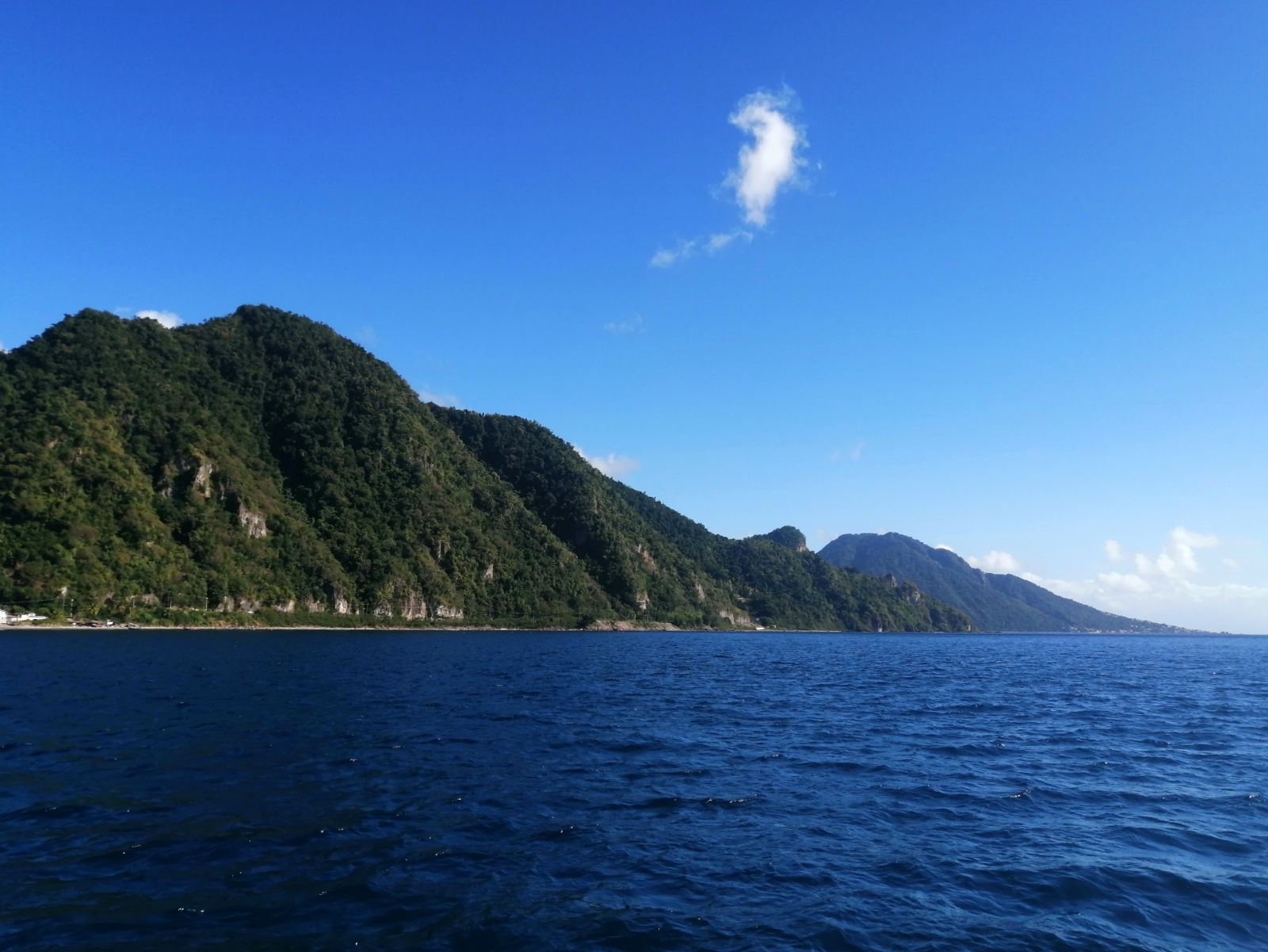 Dominica beeindruckt uns schon aus der Ferne durch surreal leuchtendes Grün, denn drei Viertel der Fläche sind von Regenwald bedeckt. Wir schnappen uns als erste Anlaufstation eine Boje in einer unschmucken Bucht in der Nähe von Roseau, wo wir zwei Nächte verbringen. Der Fußweg in die Stadt zum Einklarieren ist anstrengend, der Verkehr schnell, laut und links, die Straße schlecht und fußgängerfeindlich. Da das einzige Bootsfachgeschäft schon geschlossen hat, kaufen wir am Straßenrand eine billige Touristen-Dominica-Flagge und setzen sie als Gastlandflagge. Für nur vier Tage Aufenthalt eigentlich die perfekte Lösung.