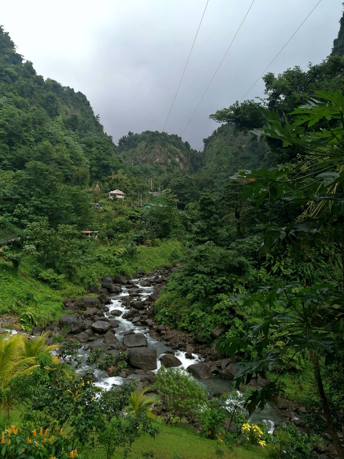 Das Land ist, wie die meisten der eigenständigen karibischen Inseln, eher arm, hat eine hohe Arbeitslosigkeit und lebt hauptsächlich von Landwirtschaft und Tourismus. Es gibt (noch) keinen großen Flughafen, der von internationalen Airlines genutzt wird. In der Hauptstadt Roseau können immerhin zwei Kreuzfahrtschiffe gleichzeitig andocken – wir haben während unseres Aufenthaltes drei Exemplare an- und ablegen gesehen. Wie sehr die Insel versucht, für Segeltouristen wie uns attraktiv zu erscheinen, erkennt man auch an der Tatsache (nicht verifiziert), dass auf den Diebstahl eines Jacht-Beiboots 9 Jahre Gefängnis stehen. Das ist viermal so lange wie für Diebstahl eines lokalen Fischerbootes. Hurricanes sind in der Sommerzeit leider keine Seltenheit – sie verwüsten alle paar Jahre die Küstenstädte, zuletzt Maria im Jahr 2017. Wir hören Geschichten von Häusern, Hotels und Stegen, die regelmäßig zerstört und neu gebaut werden müssen und von Einheimischen, die das als Teil ihres Lebens akzeptieren.