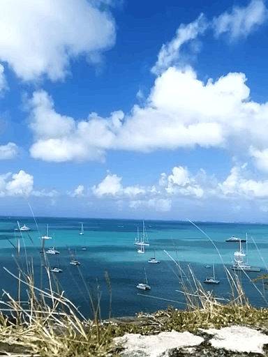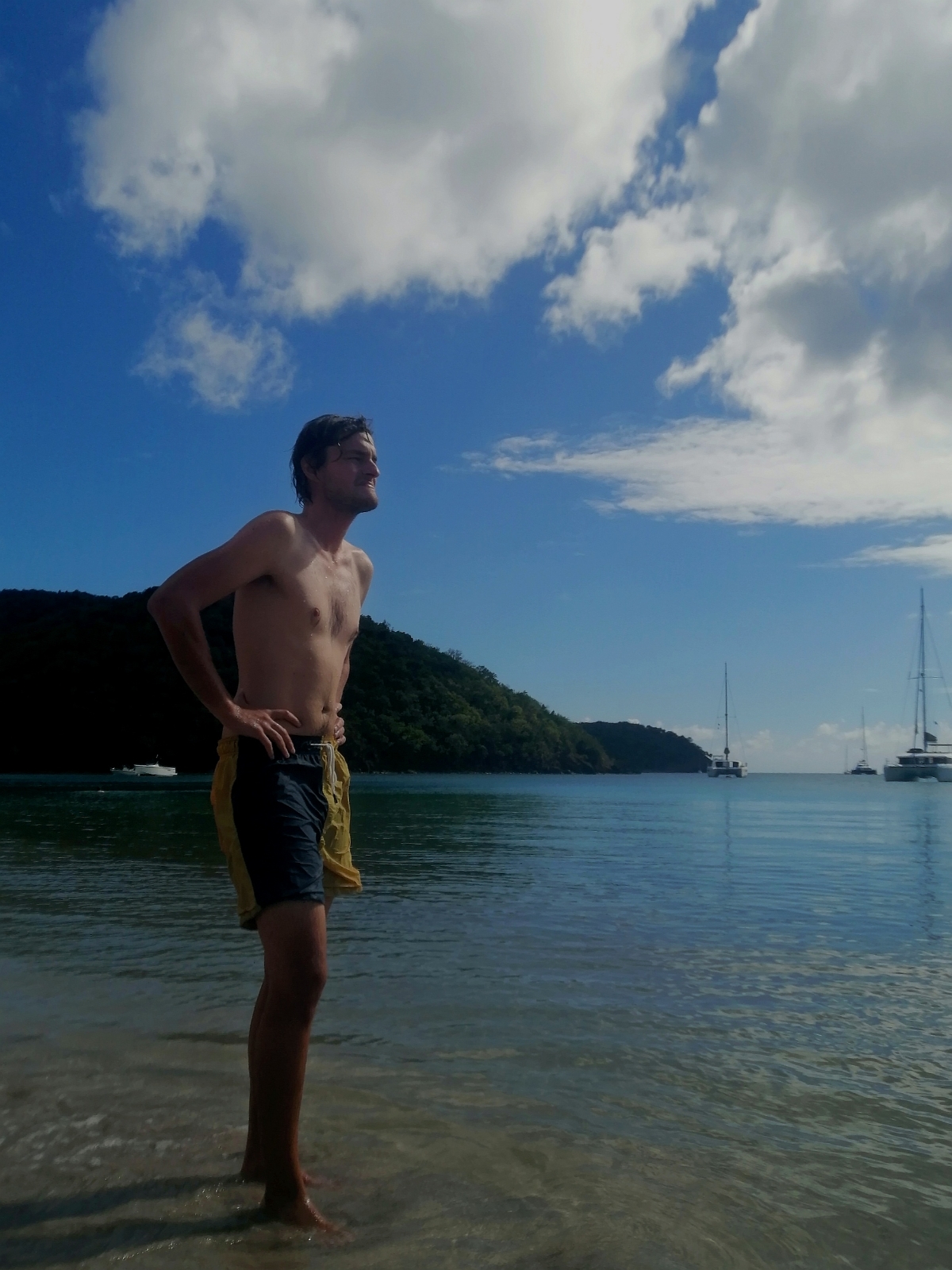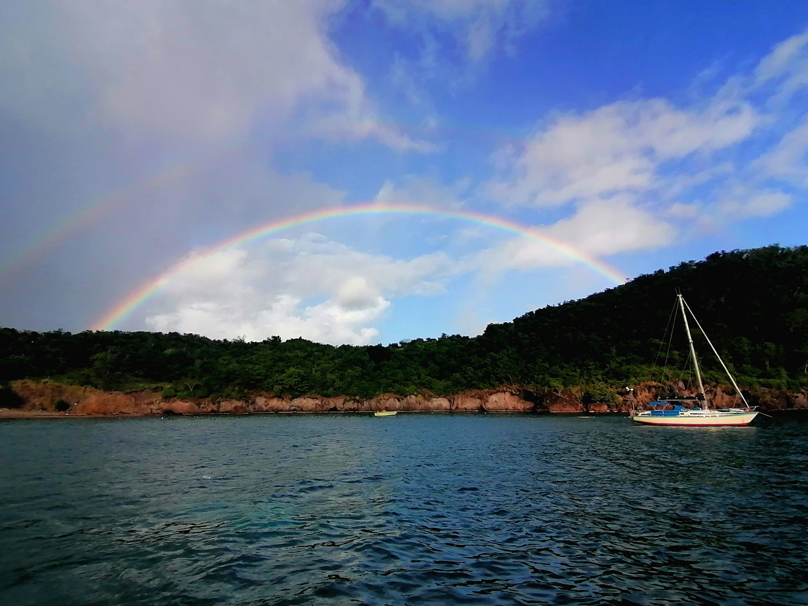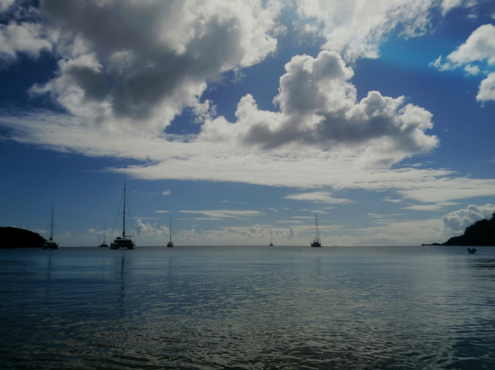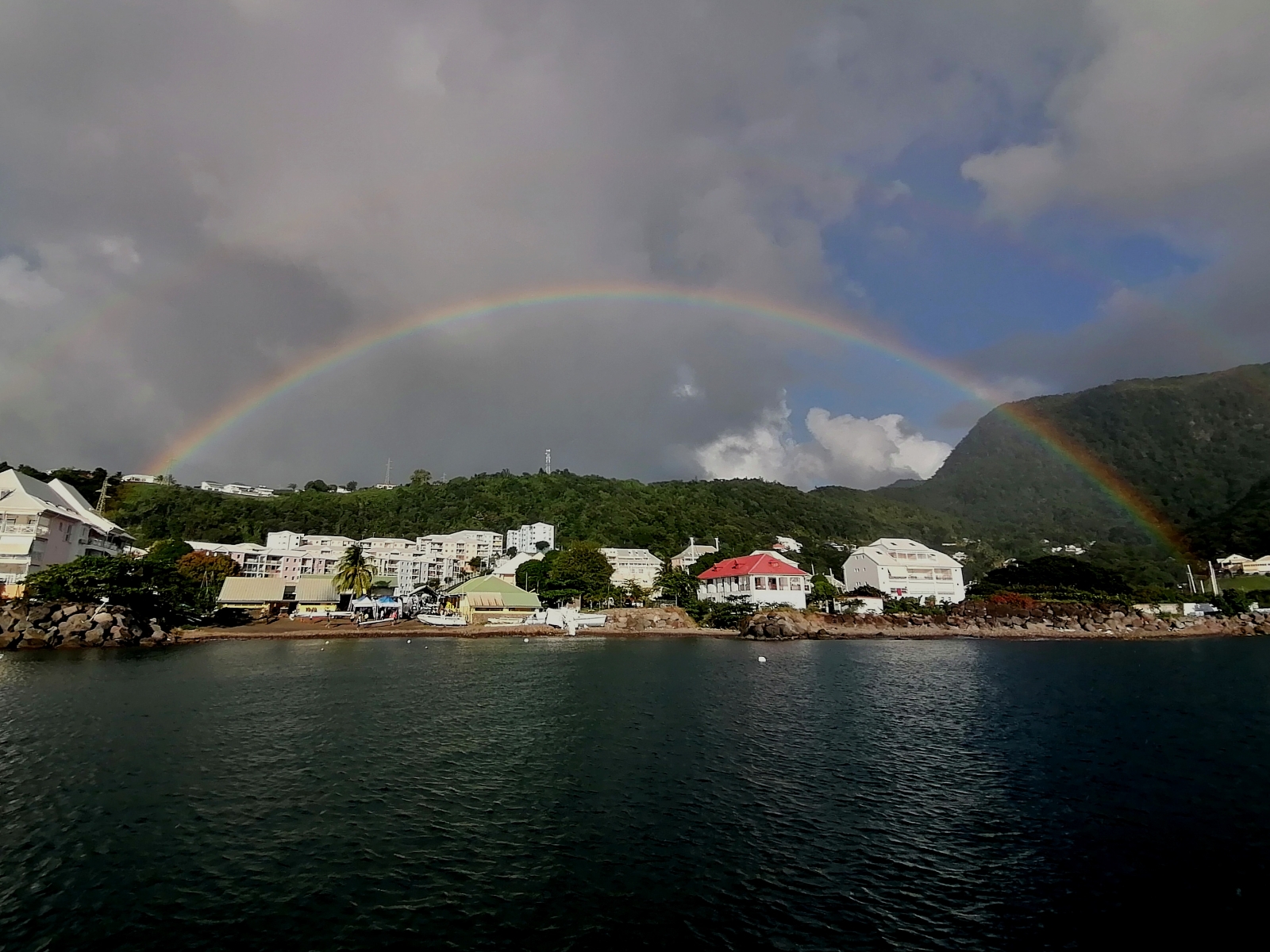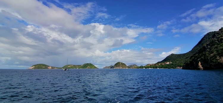 Den nächsten Morgen verbringen wir an Land des kleinen, touristischen Ortes Terre de Haut bei einem petit dejeuner mit Galettes und Expresso. Nach Proviantieren, Strandeln und Einklarieren verlassen wir unseren Ankerplatz, um eine der anderen Saints-Inseln aufzusuchen und in unserer auserkoren Bucht dürfen wir ein Hafenkinospektakel der Extraklasse bestaunen.