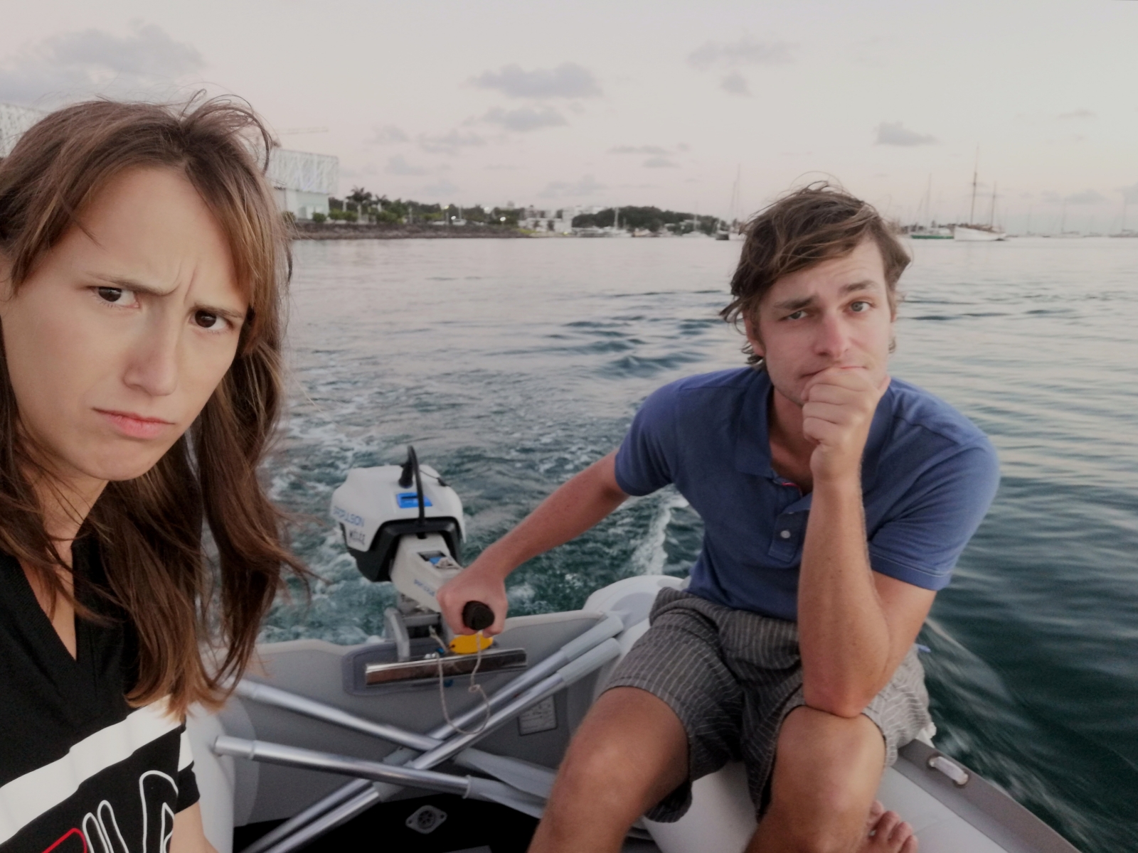 Am nächsten Morgen beziehen wir früh unseren reservierten Liegeplatz in der angrenzenden Marina – unser erster Hafen seit etwas über einem Monat. Während der Einfahrt stoßen wir wohl mit einer Schildköte zusammen. Eine heftige Erschütterung im Rumpf, aber keine sichtbaren Schäden. Hier haben wir nun zwei Tage Zeit zum Putzen, Aufräumen und Erledigen von kleinen Arbeiten bevor unsere zweiten karibischen Gäste Johanna & Michi landen. Nach einem fleißigen Tag rösten wir gerade Zwiebel an fürs Abendessen als Michi anruft: Wir sind jetzt da, bitte abholen! Wiiiiiiiiiee…? Nach 20 Minuten der Verwirrung dürfen wir also aufgrund eines kleinen Datumsverdrehers unsere ersten Überraschungsgäste auf der Mêlée begrüßen. Recht sauber ist es schon, Essen gibts auch genug, rasch ein Begrüßungsrumpunsch gemischt – willkommen an Bord! Zum Glück sind wir schon im richtigen Hafen im richtigen Land. Den Bonustag und auch noch den nächsten halben Tag nutzen wir, um unser marodes Steuerrad neu zu beziehen. *bling*