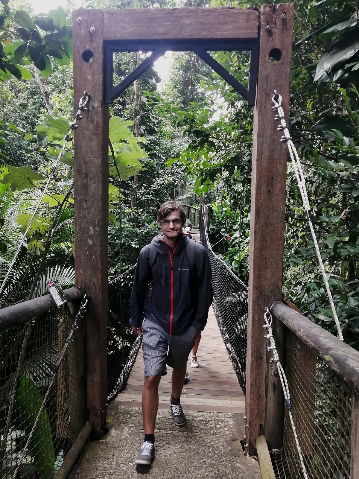 Die zweite Station des Tages ist ein Zoo. Sehr nett gestaltet mit Hängebrücken und mitten in den Dschungel integriert liegt der Parque des Mammales. Vorbei an Papageien, Affen und Ewoks (da bin ich doch ziemlich sicher), mitten durch das Lemurengehege und über einen Hängebrückenpark – so verbringen wir ein paar gemütliche Stunden mit regenwaldtypischen Schauern alle paar Minuten.