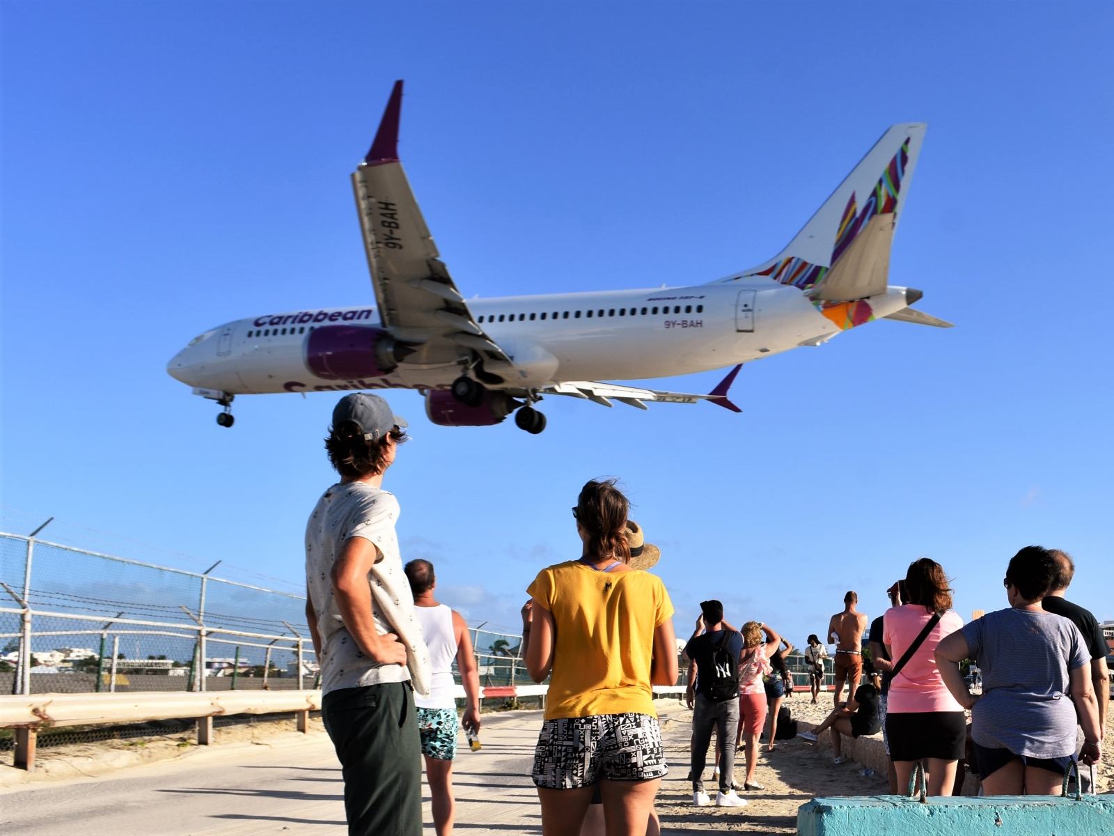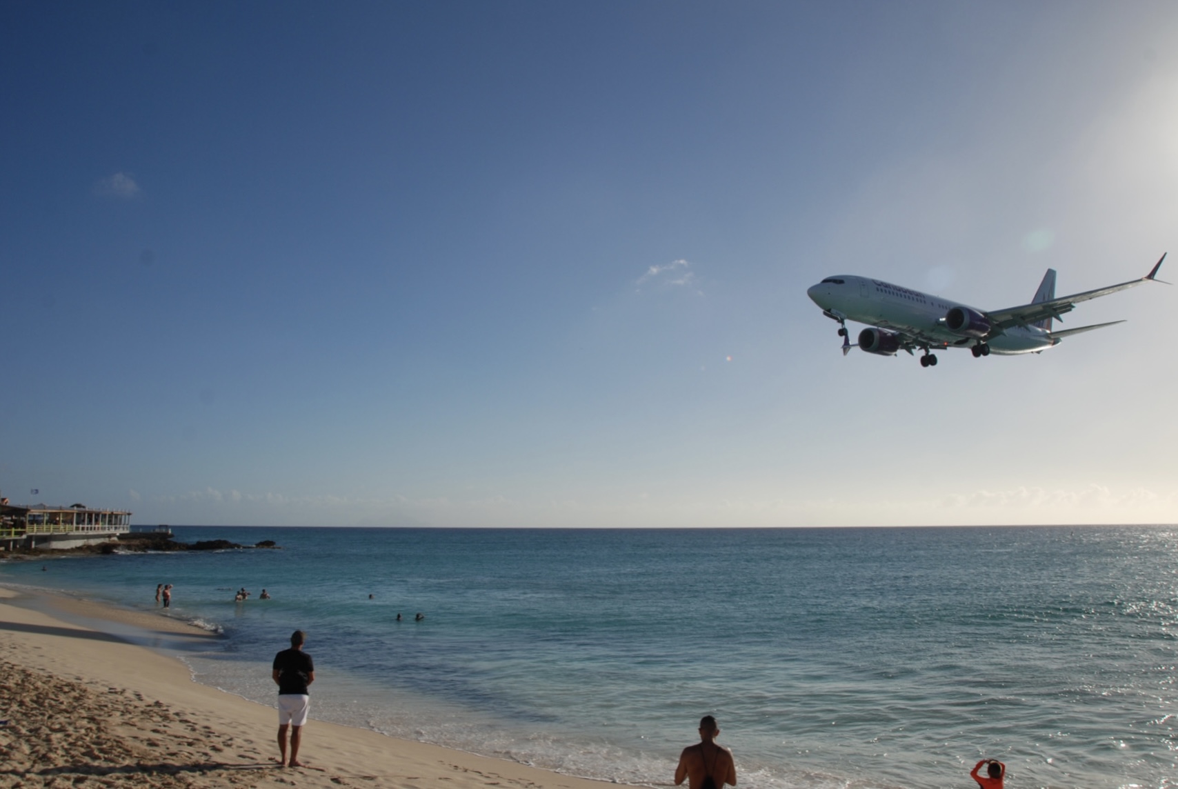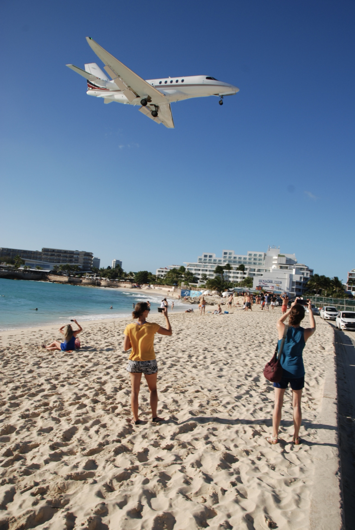 Zum einen der berühmt berüchtigte internationale Flughafen von Sint Maarten mit dem unmittelbar angrenzenden gefährlichsten Strand der Welt. Aus sicherer Distanz beobachten wir wie im Minutentakt kleinere Privatjets und gar nicht so kleine Passagierflugzeuge über unsere Köpfe brausen und Landen. Noch spektakulärer sind jedoch die Starts, bei denen die Düsen den gesamten Strand aufwirbeln, Taschen ins Meer wehen und den Badegästen und Schaulustigen ein Sandpeeling verpassen. Ein windiges Spektakel auf dieser windigen Insel.