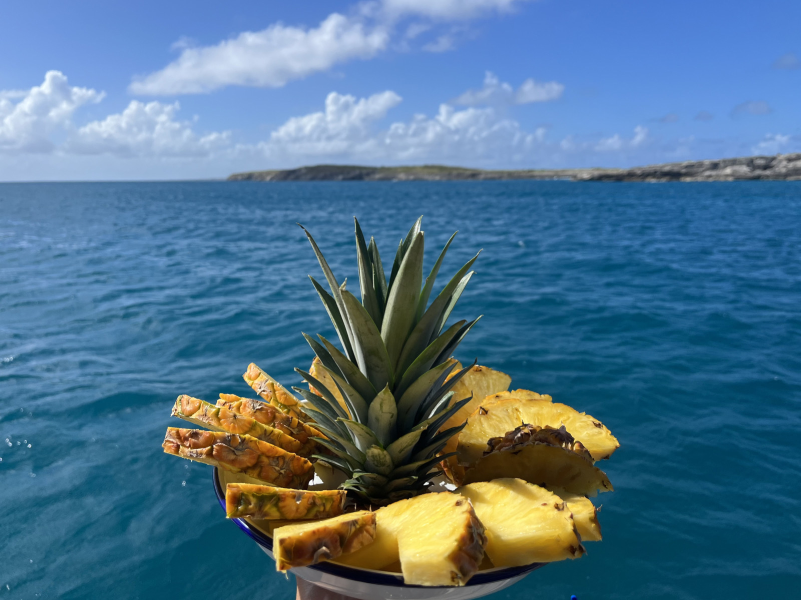 Kurzfristig organisiert Bernhard für die nächsten zwei Nächte einen Liegeplatz in der Simpson Bay Marina, um den anstehenden, selten gewordenen Crewwechsel möglichst einfach zu gestalten. Beim Anlegen dürfen wir mal wieder Zeugen eines Hafenkinos werden diesmal sind wir aber mittendrin und irgendwie doch völlig unbeteiligt. Nachdem uns Bernhard unter windigen Bedingungen gekonnt in die Parklücke schiebt empfangen uns am Steg drei Marineros, die jeweils zwei konträre Pläne verfolgen wie genau das Boot zu vertäuen sei. 45 Minuten später und unter Einbezug eines Dinghis und dreier Nachbarboote dürfen wir die letzte Leine fixieren. Für uns gibts zwischendurch nicht viel zu tun außer das Geschehen interessiert und mit viel Kopfkratzen zu beobachten. Wir beobachten zum Beispiel den Versuch, den Bug des Nachbarboots mit Hilfe des Dinghis in Windrichtung zu schieben, diesen dann nicht zu fixieren, gefolgt von verwunderten Blicken der Marineros, warum das Boot sich wieder zurückbewegt und dann den selben Versuch nochmal – immer und immer wieder. Als schließlich der letzte Marinero in seinem Golfwagen abbraust legen wir unsere Leinen nochmal neu. Das war interessant. Daraufhin ein Manöverschluck – sogar bereits mit einem neuen Crewmitglied…