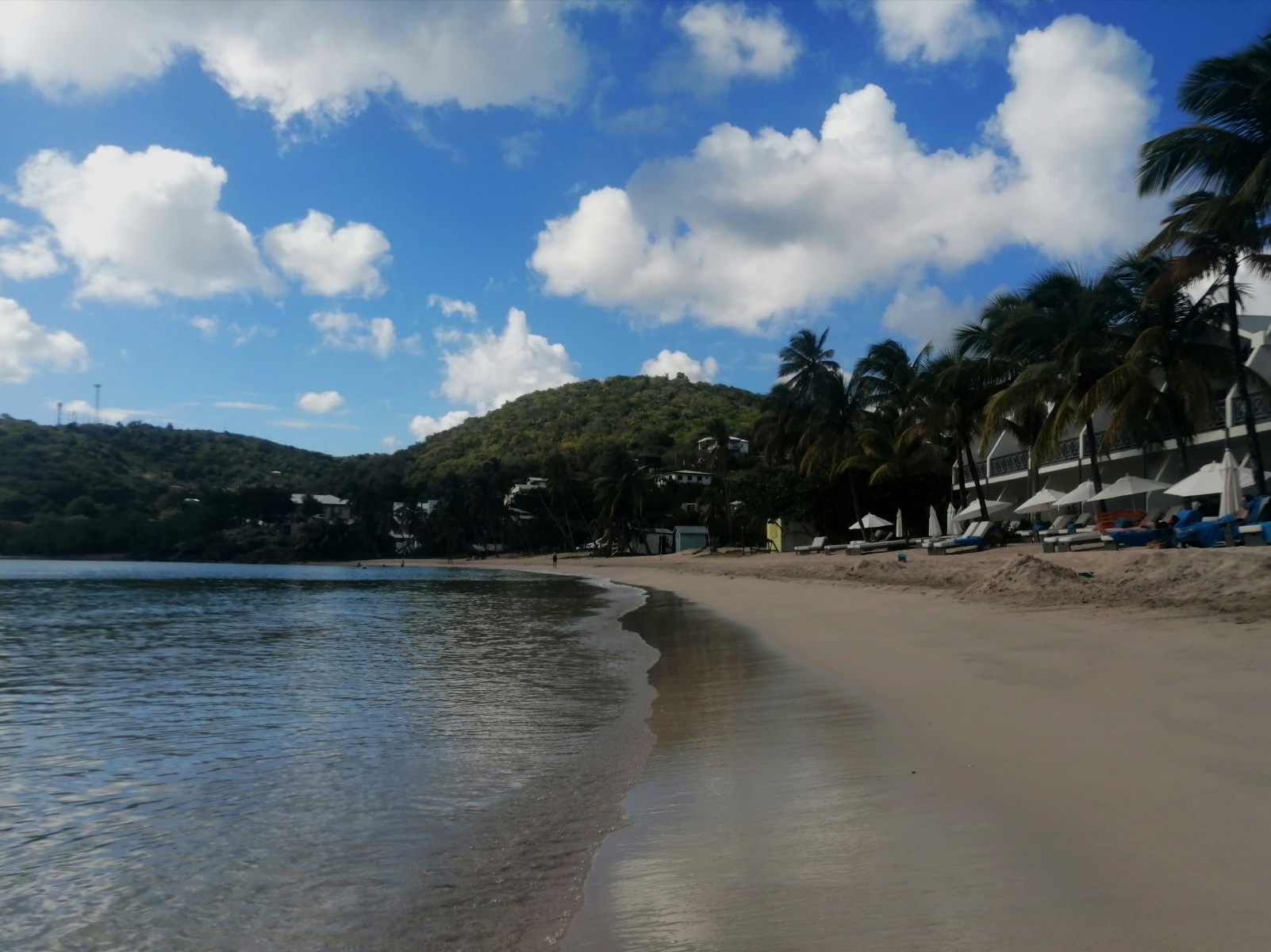Einmal Ausschlafen, dann geht es zum Einklarieren, was wie auf allen nichtfranzösischen Inseln eher aufwendig ist. Der Weg führt nacheinander zu Anmeldung, Port Health, Customs, Immigration, nochmal Customs, Port Authority und schließlich zur Kassa. Jede der genannten Stellen ist ein eigenes Büro, aber immerhin liegen alle direkt nebeneinander. Da recht wenig los ist, dauert der Prozess insgesamt nur eine Stunde. Einige East Carribean Dollar ärmer und ein paar Stempel im Reisepass reicher sind wir clear to go. Zum Vergleich: Auf den französischen Inseln Martinique und Guadeloupe haben wir jeweils null bis drei Euro gezahlt, haben 5 Minuten Daten in den Customs-Computer eingetippt und waren damit fertig einklariert. Beim ersten Mal hat mich zwar die französische Tastatur noch ins Schwitzen gebracht, doch inzwischen habe ich damit schon Routine.