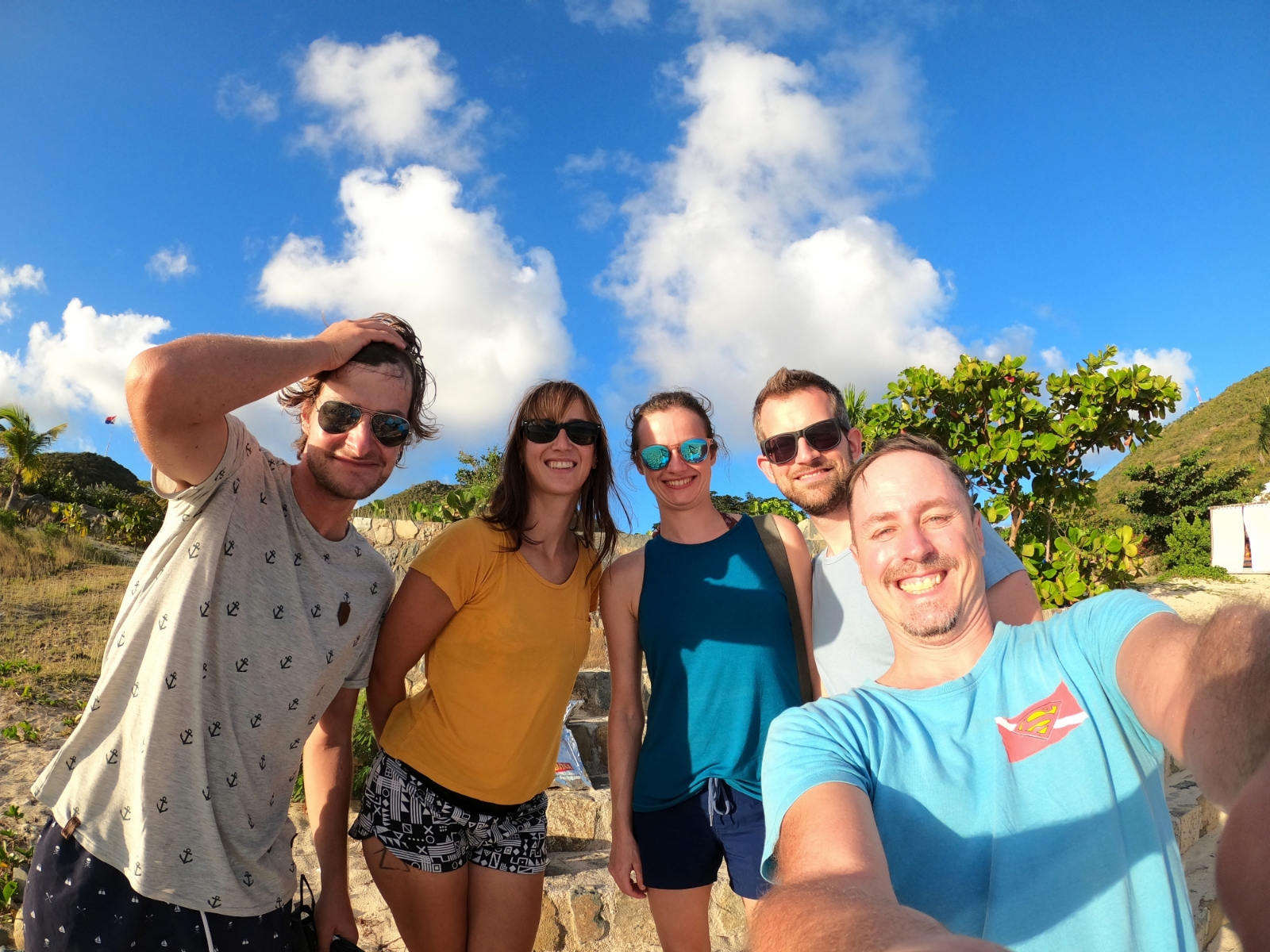 Seit langem führen wir wieder einen fliegenden Crewwechsel durch. Kurz nach unserem umständlichen Anlegen in der Simpson Bay Marina steigt Jimi, der schon seit einer Woche in Sint Maarten urlaubt, aus den Tiefen seines letzten Tauchgangs empor und wir treffen uns in seiner Stammbar. Mit seinem Mietauto können wir uns zu fünft dann sogar noch auf zwei kleine Ausflüge begeben:
